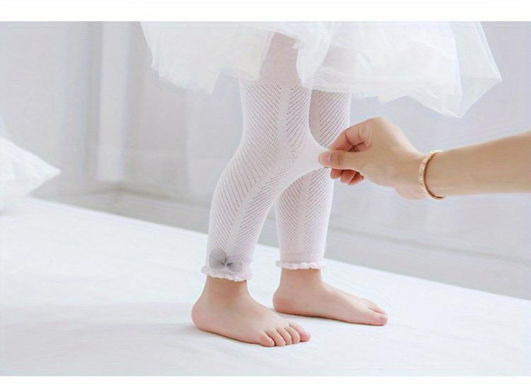 ٢ قطع بنطلون شراب بناتي (جوارب طويلة صيفية – شبكية رقيقة – بفيونكة دانتيل)