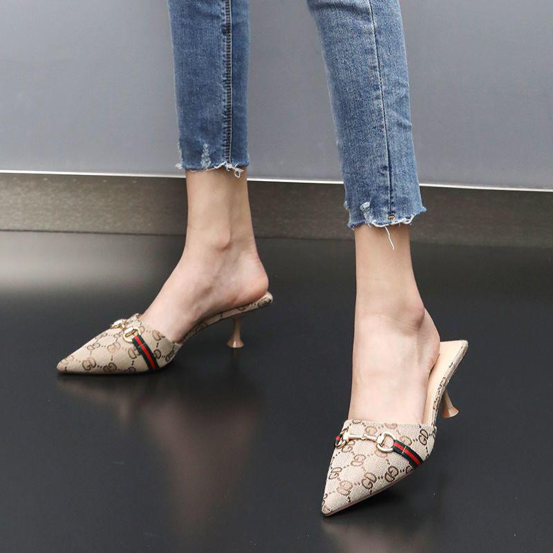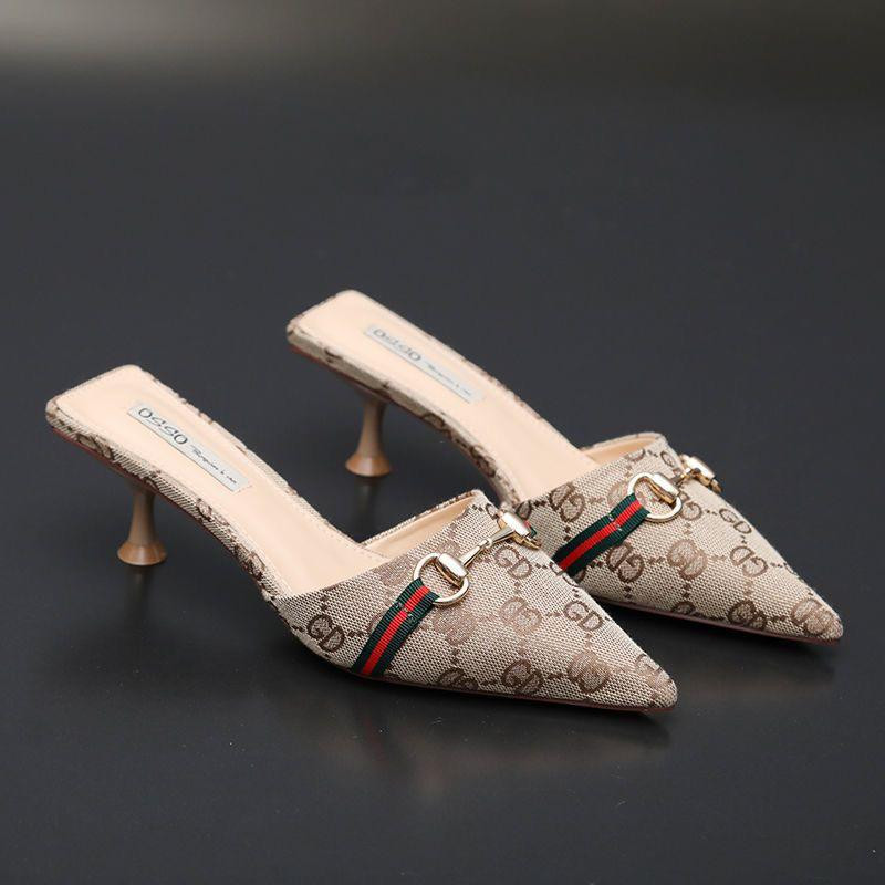 2025 جديد، نصف مفتوح بمقدمة مدببة، كعب رفيع منخفض، أنيق ومناسب للخروج.