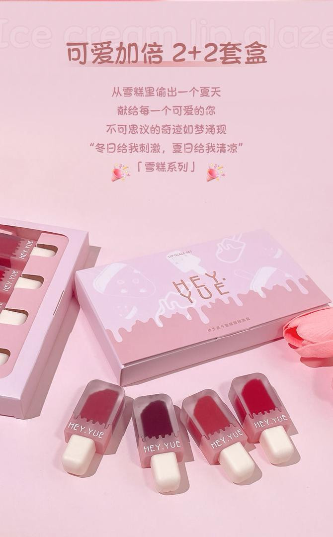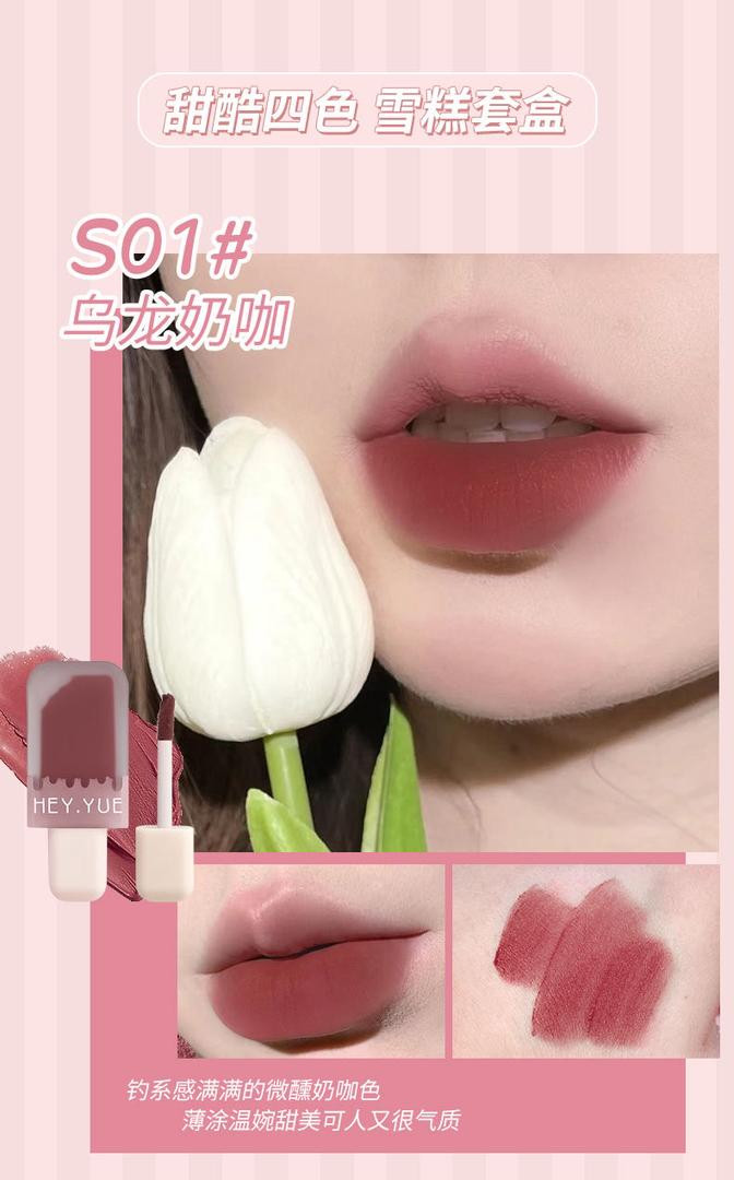 【٤ عبوات】 طقم أحمر شفاه صغير على شكل آيس كريم ? – ملمس مطفي غير لامع