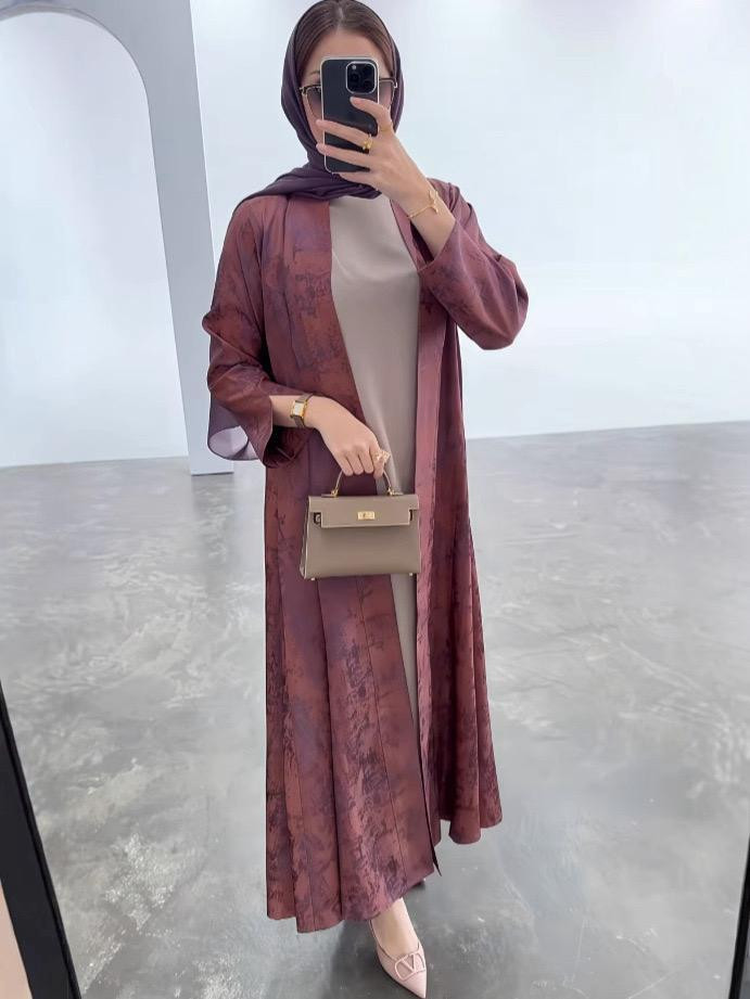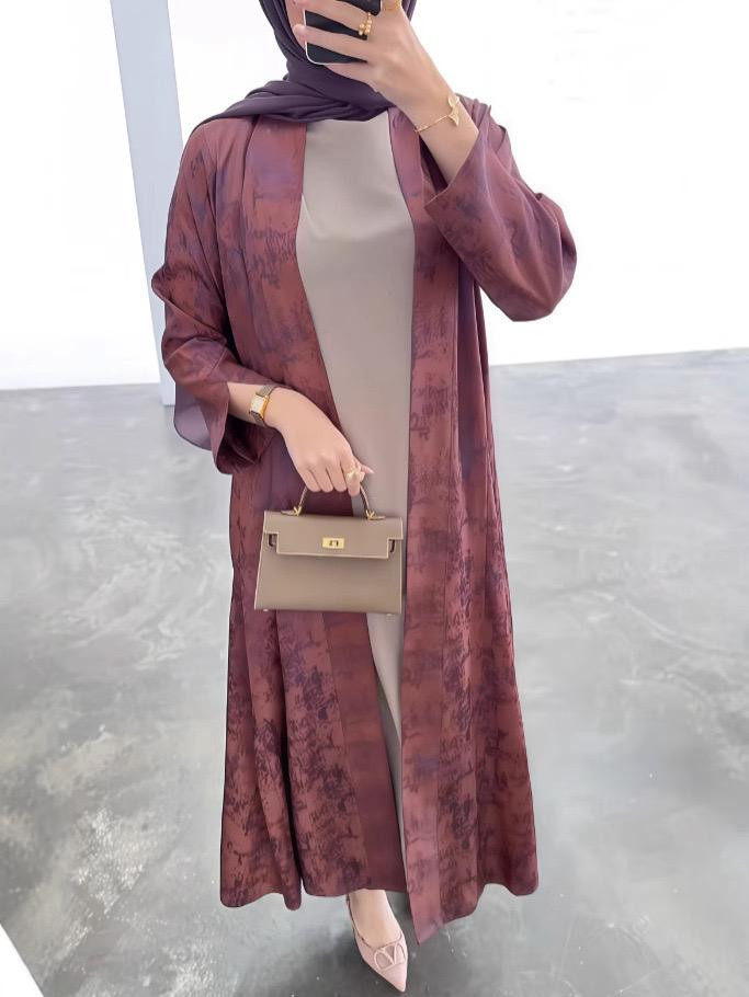 عباة خليجية متوسط الطول 2025، تصميم أنيق مطبوع بلمسة عصرية كاجوال،