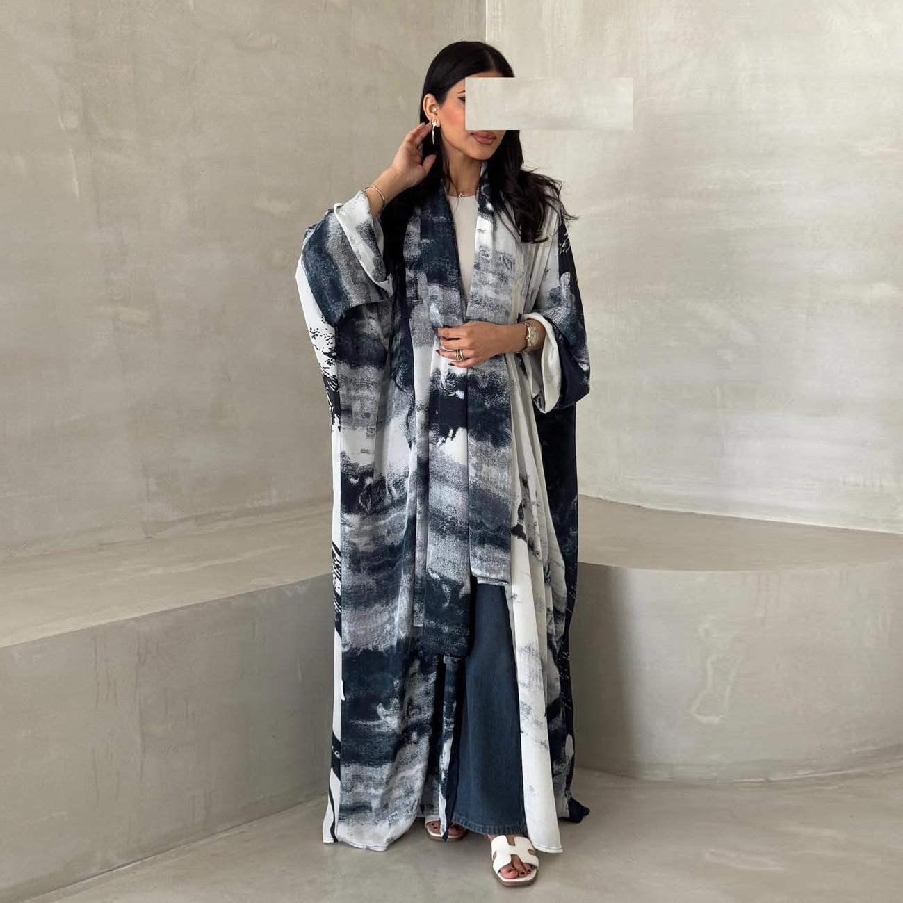 عباية كاجوال بنقشة سحابية باللون البحري مقاس واحد