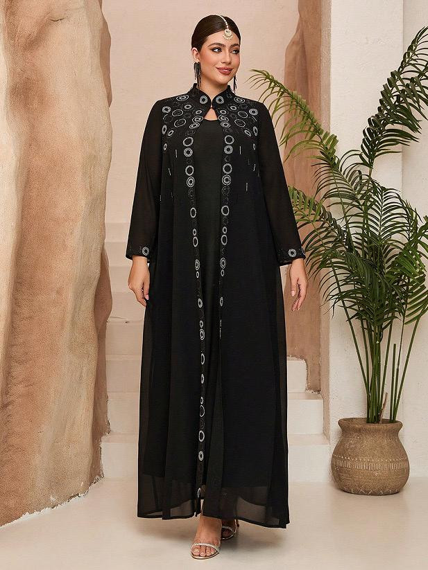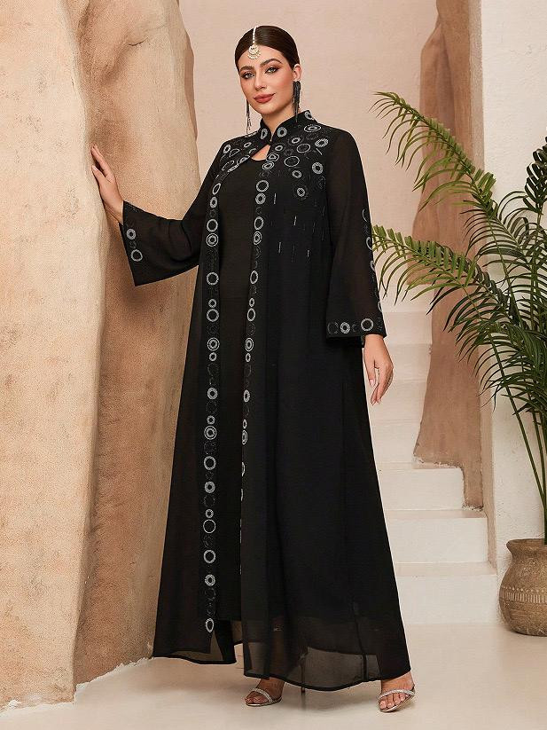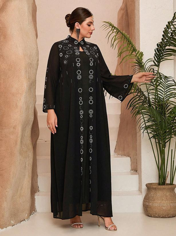 عباية نسائي مستوحى من الطابع المسلم والنمط العرقي بتطريز أنيق وقصة واسعة تُظهِر الجسد بشكل