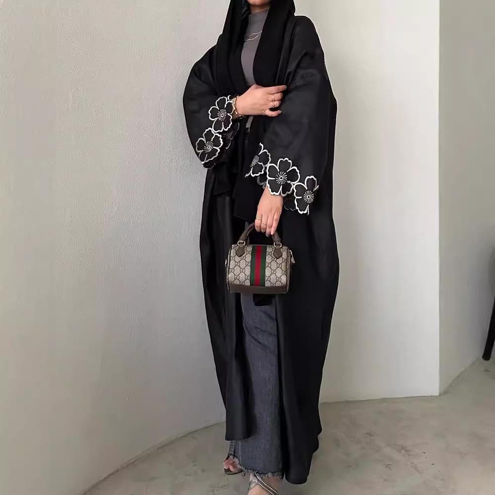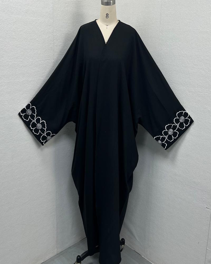 عباية سوداء بتطريز ناعم على الأكمام مع شيلة مقاس واحد