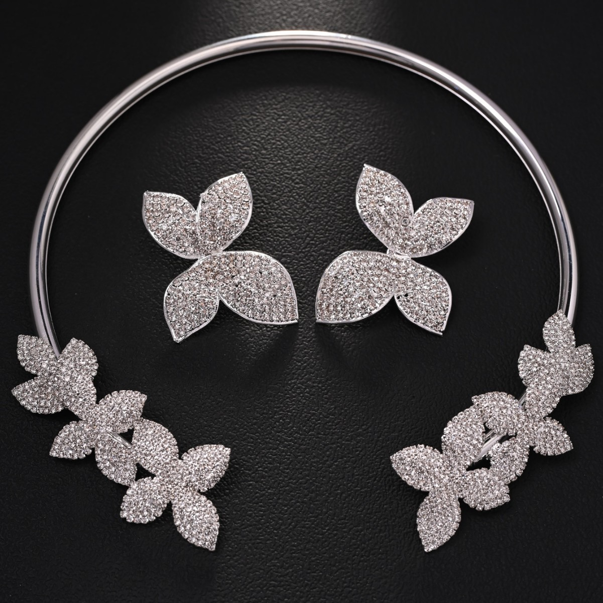 عقد نسائي مفتوح بتصميم زهرة مرصعة بفصوص لامعة