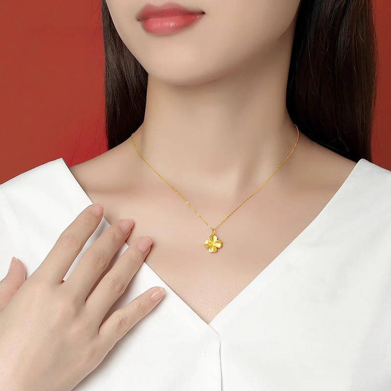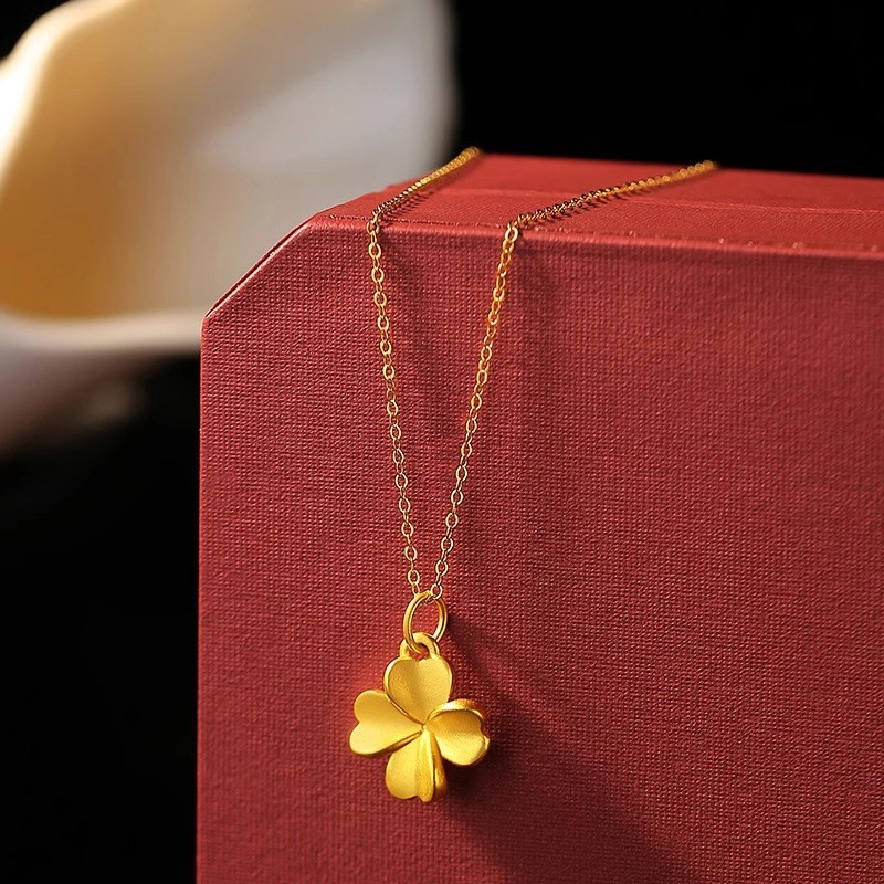 عقد نسائي من الفولاذ التيتانيومي بلون ذهبي مطلي بتصميم ورقة البرسيم الرباعية