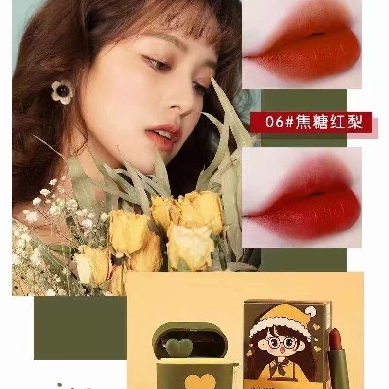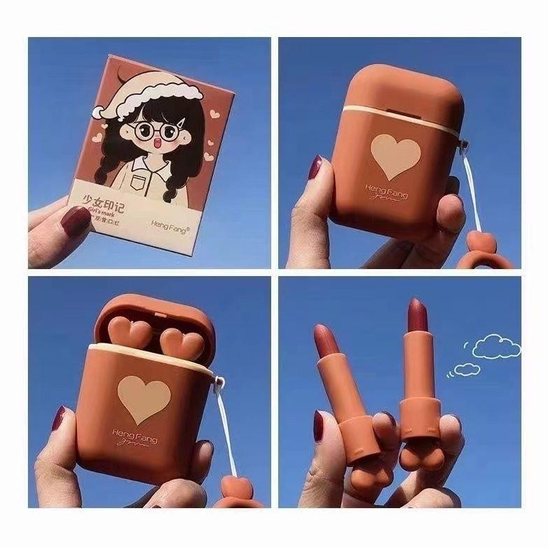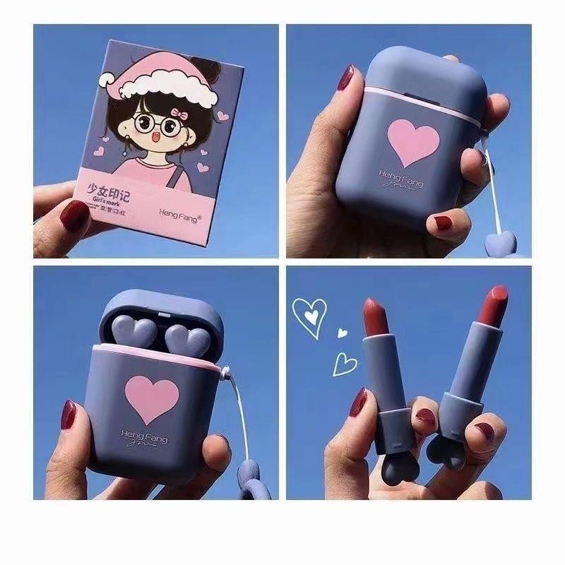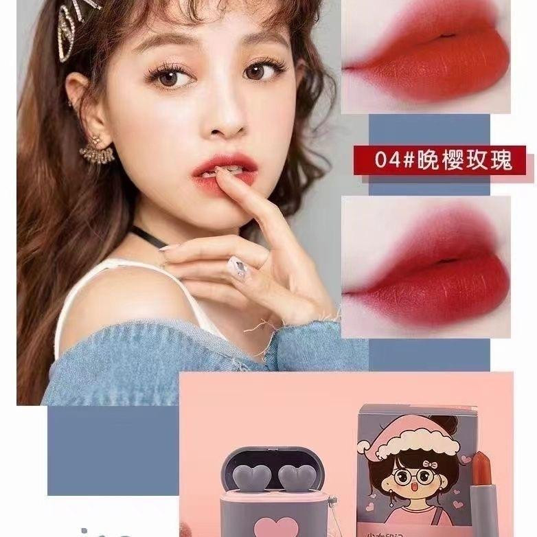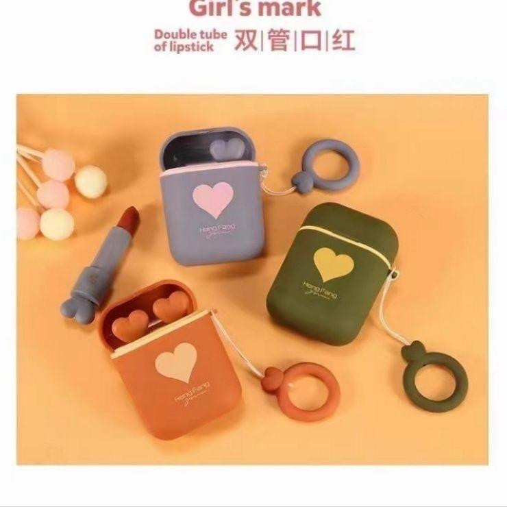 أحمر 2 داخل العلبه شفاه مزدوج بتصميم كرتوني لطيف على شكل سماعة، بتركيبة مخملية مطفية تدوم طويلًا ولا تبهت، يمنح لونًا مشرقًا مناسبًا ويمكن تعليقه على الحقيبة