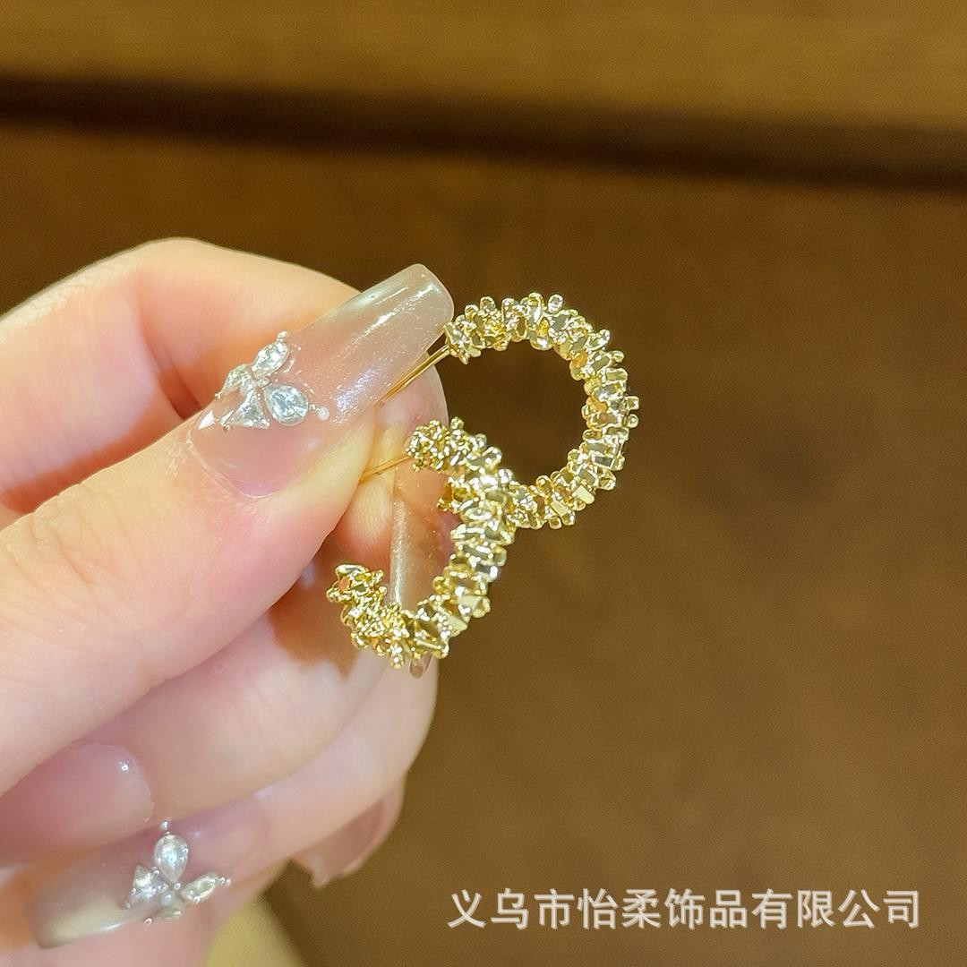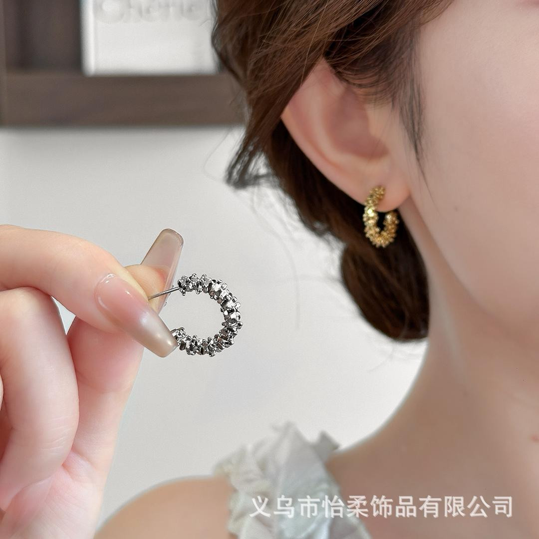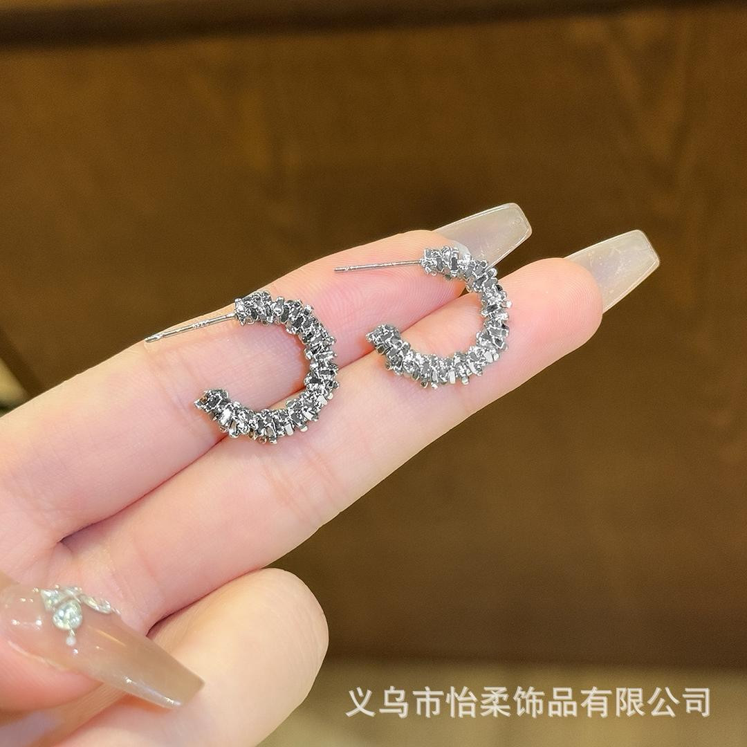 أقراط بشكل نصف دائرة C مع فتات الفضة، تصميم فريد صغير، موضة INS، أنثوي، أنيق فاخر، إكسسوار نسائي