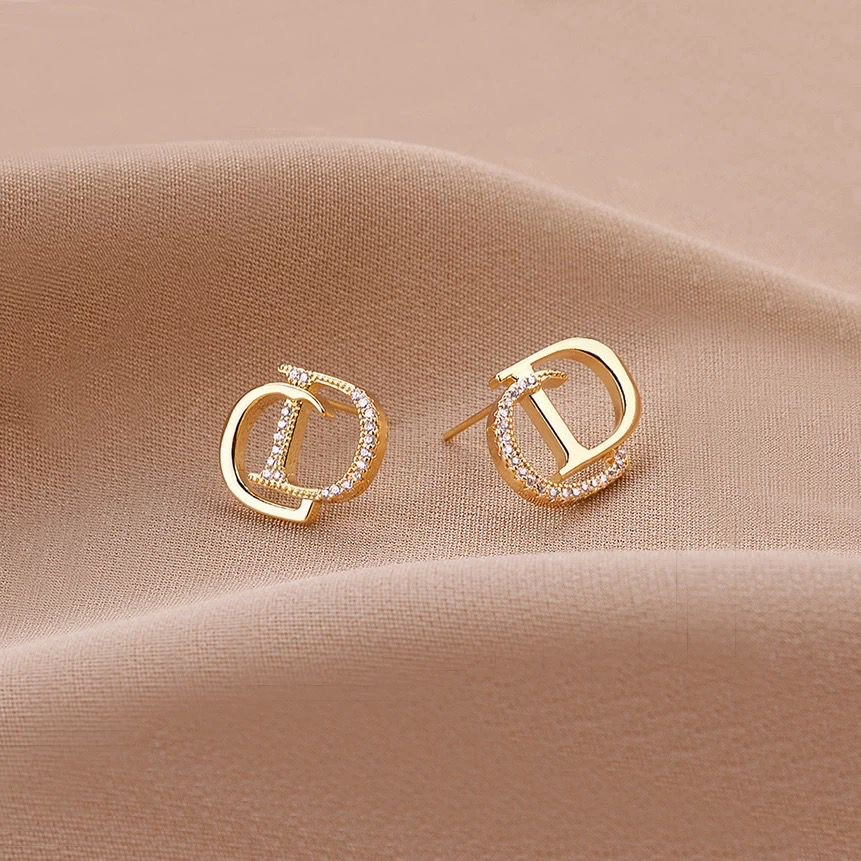 أقراط معدنية دائرية بتصميم حرف D – لون ذهبي