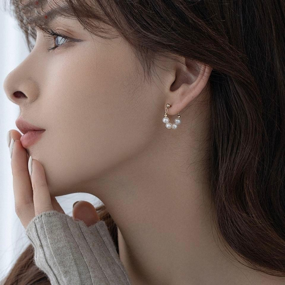 أقراط نسائية بتصميم فاخر عصري، من الفضة الإسترلينية مع أربع حبات لؤلؤ طبيعي متدلية، أسلوب أنثوي