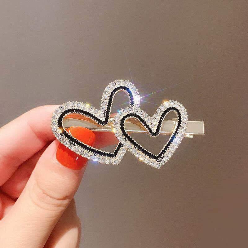 اسم المنتج بالعربية: دبابيس شعر كريستالية أنيقة (٤ قطع) بتصاميم متنوعة – فيونكة، وردة، قلب مزدوج، وشكل X لامع