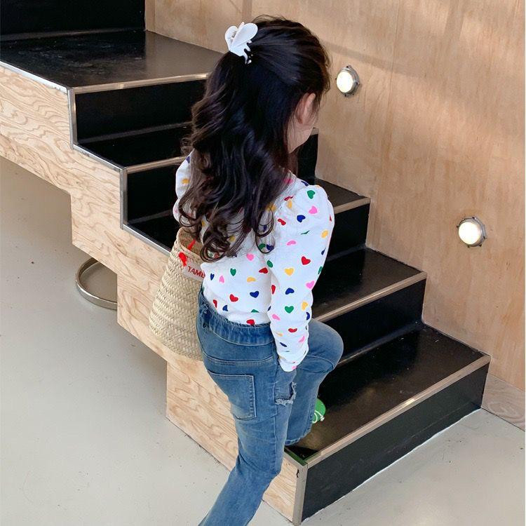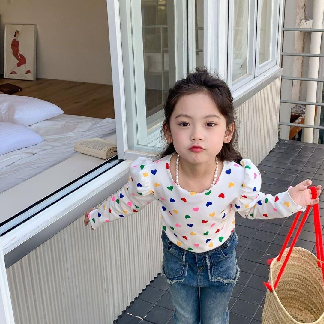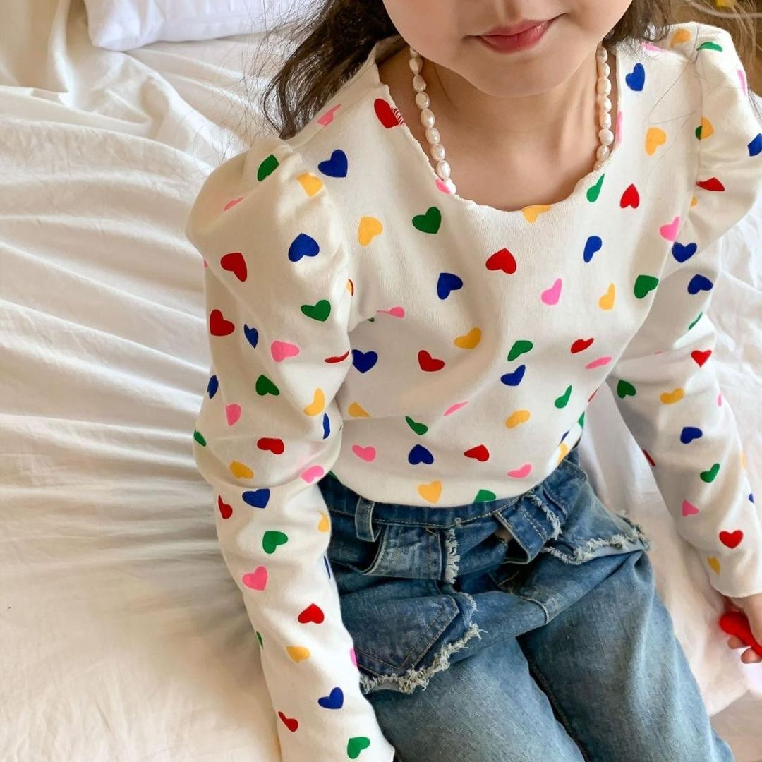 بلوزة بناتية بأكمام طويلة مطبعة بقلوب ملونة، قطنية مريحة وأنيقة للإطلالات اليومية