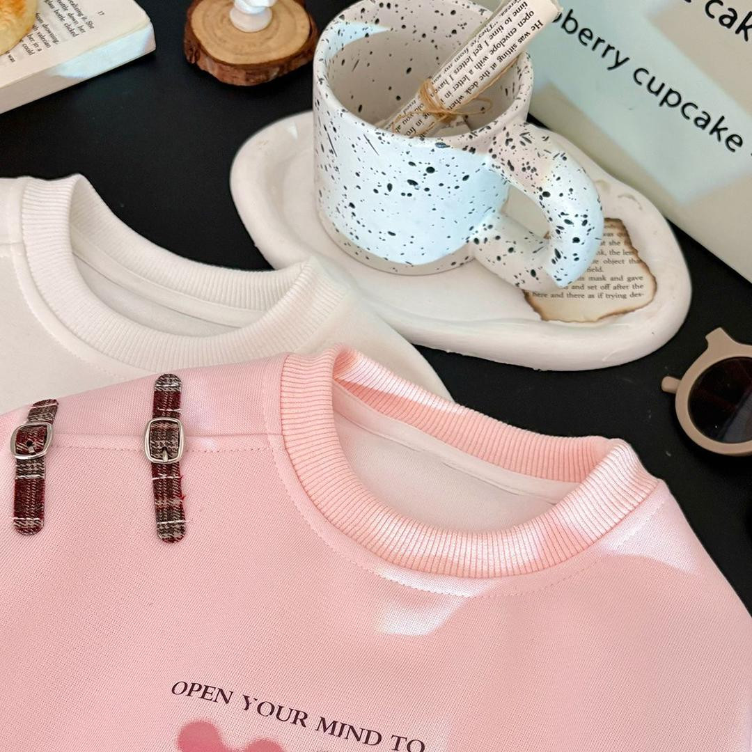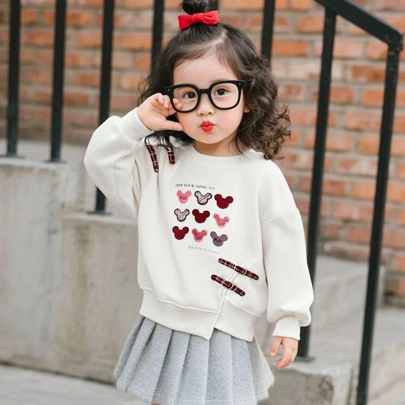 (بلوزة جديدة للبنات لفصلي الربيع والخريف، مريحة، برقبة دائرية، بطبعة قلوب، بتصميم كاجوال للأطفال