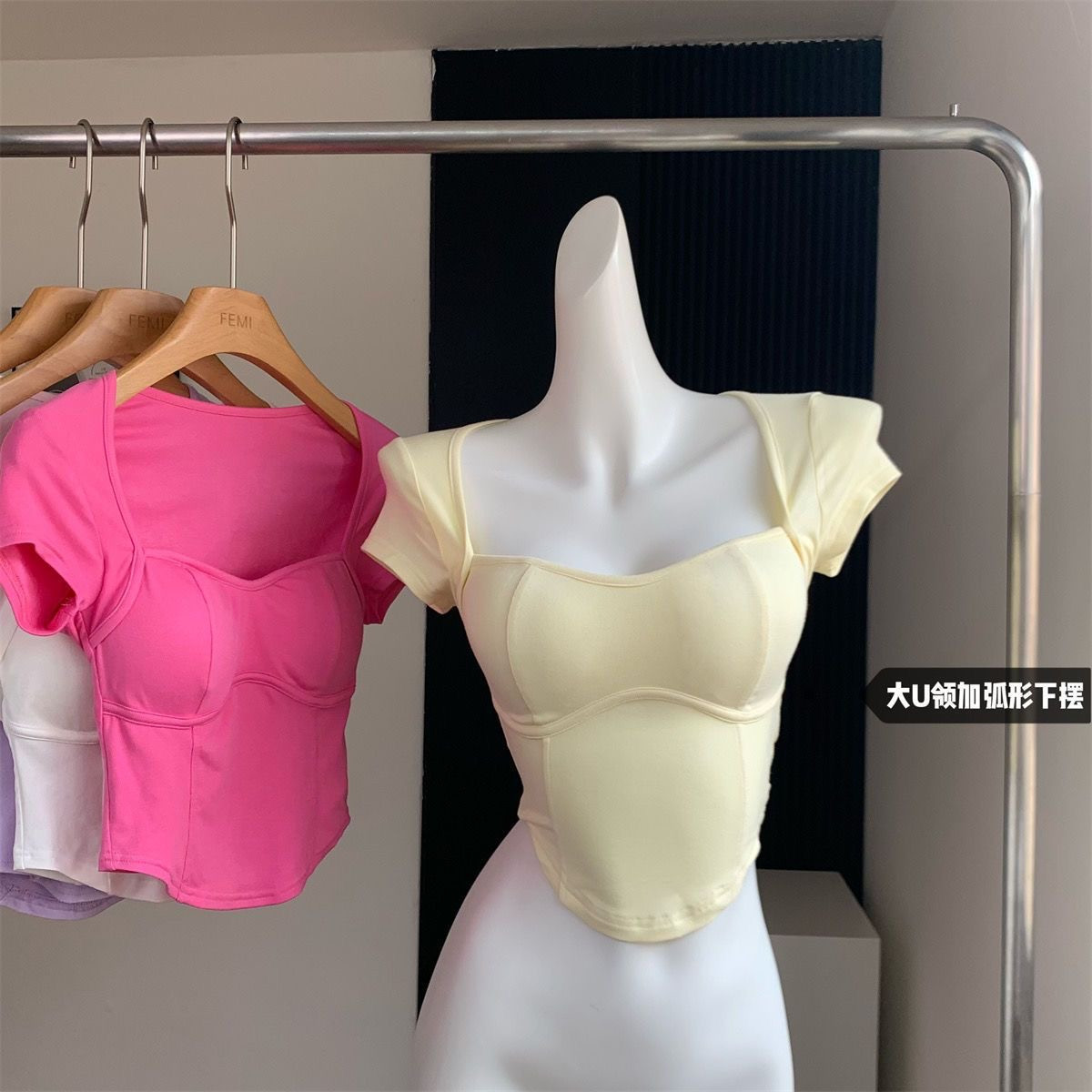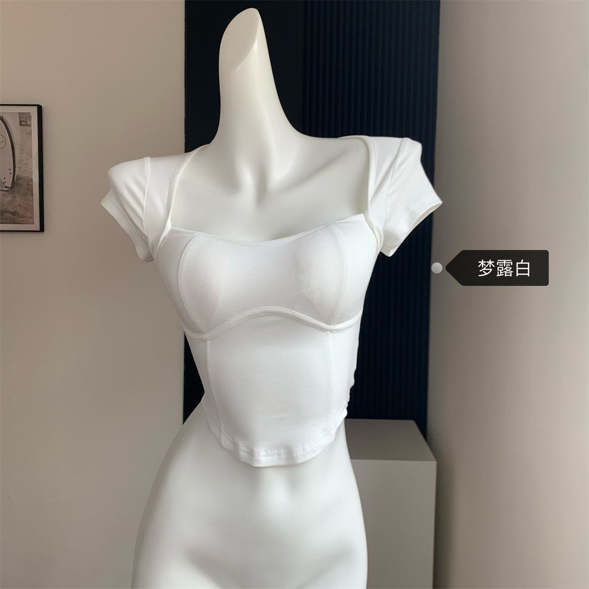 بلوزة قصيرة بكم قصير مع حمالة داخلية – تصميم أنثوي