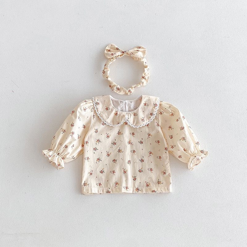 بلوزة مواليد بنات بأكمام منقوشة ونمط مخرم