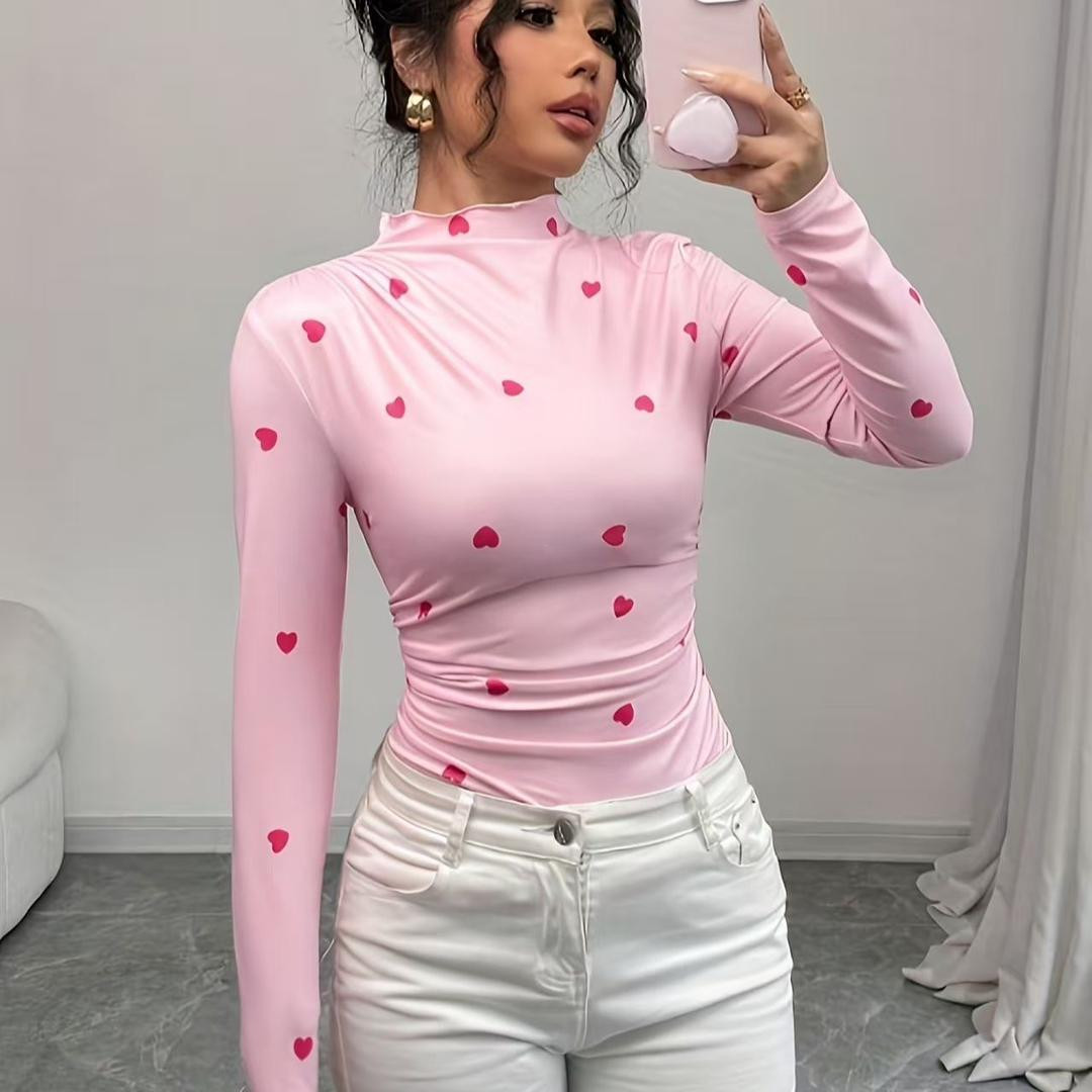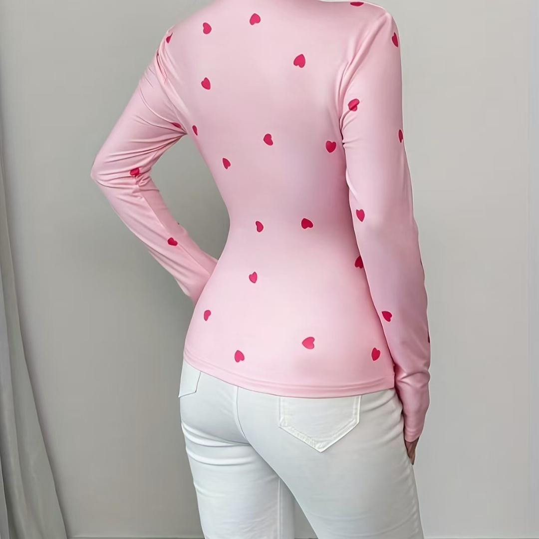 بلوزة نسائية بأكمام طويلة مزينة بنقشة قلب ناعمة تصميم بسيط وأنيق