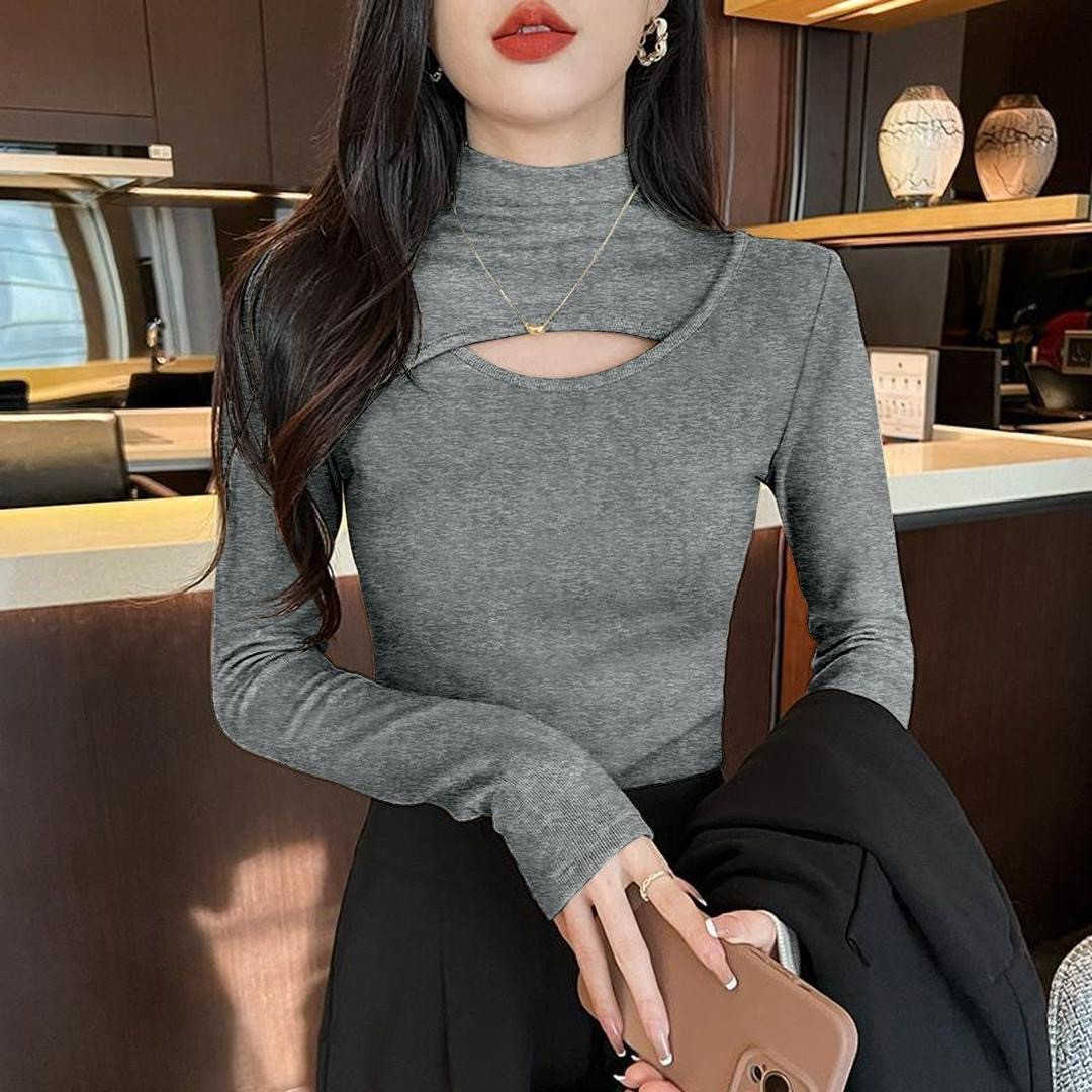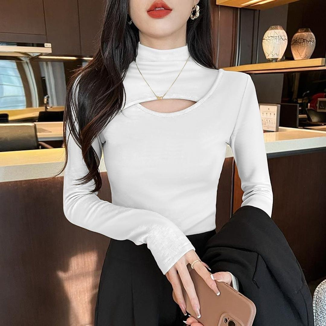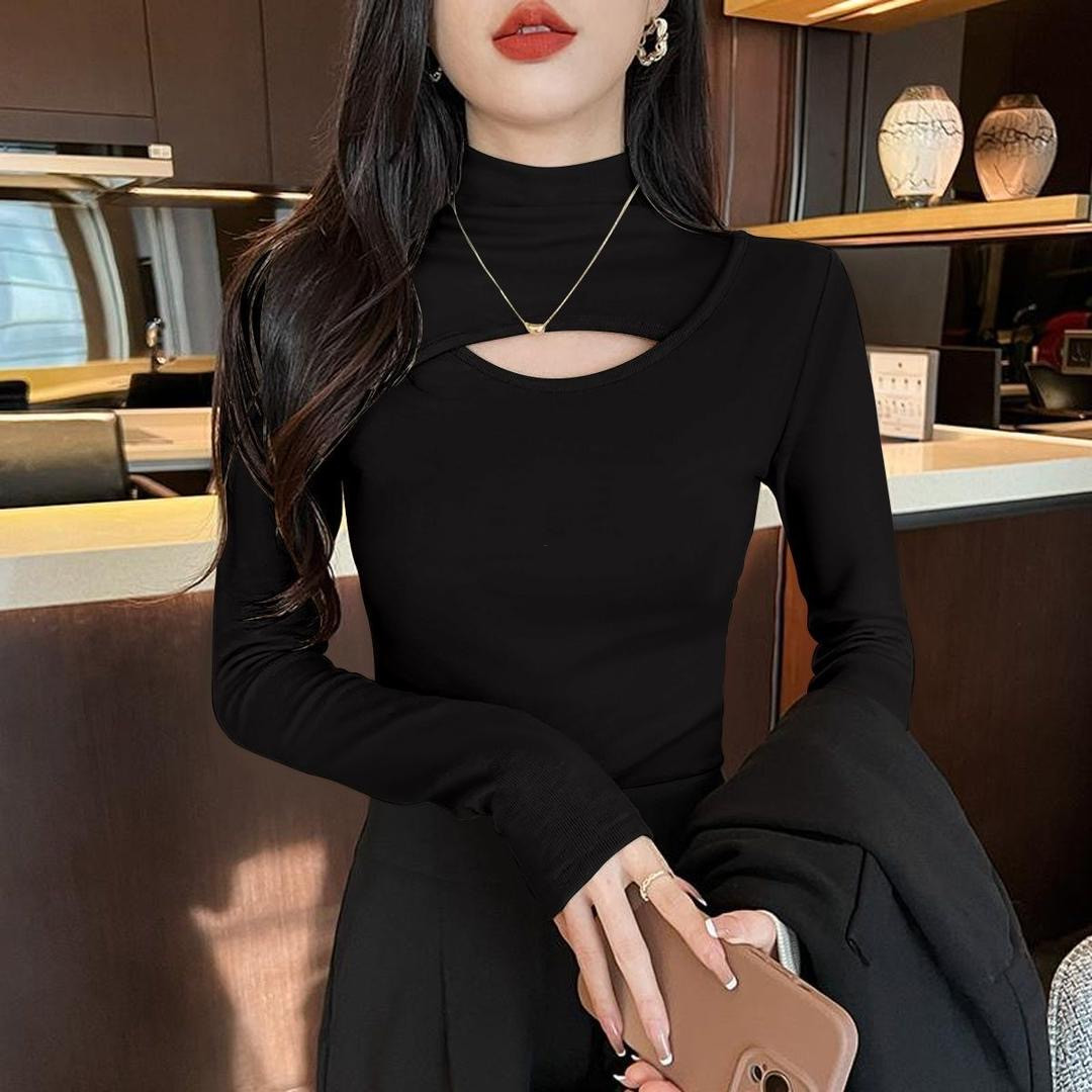بلوزة نسائية برقبة عالية مع فتحة أمامية