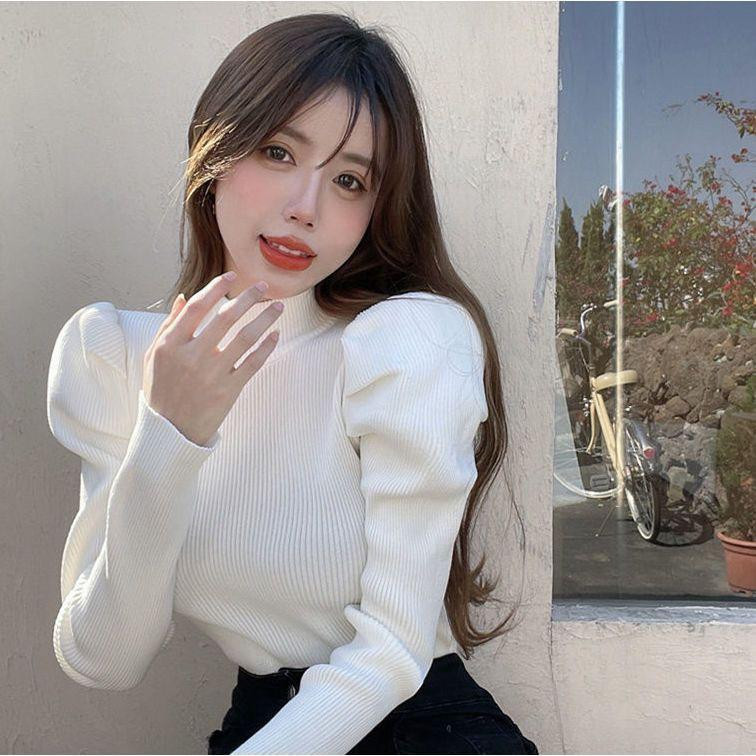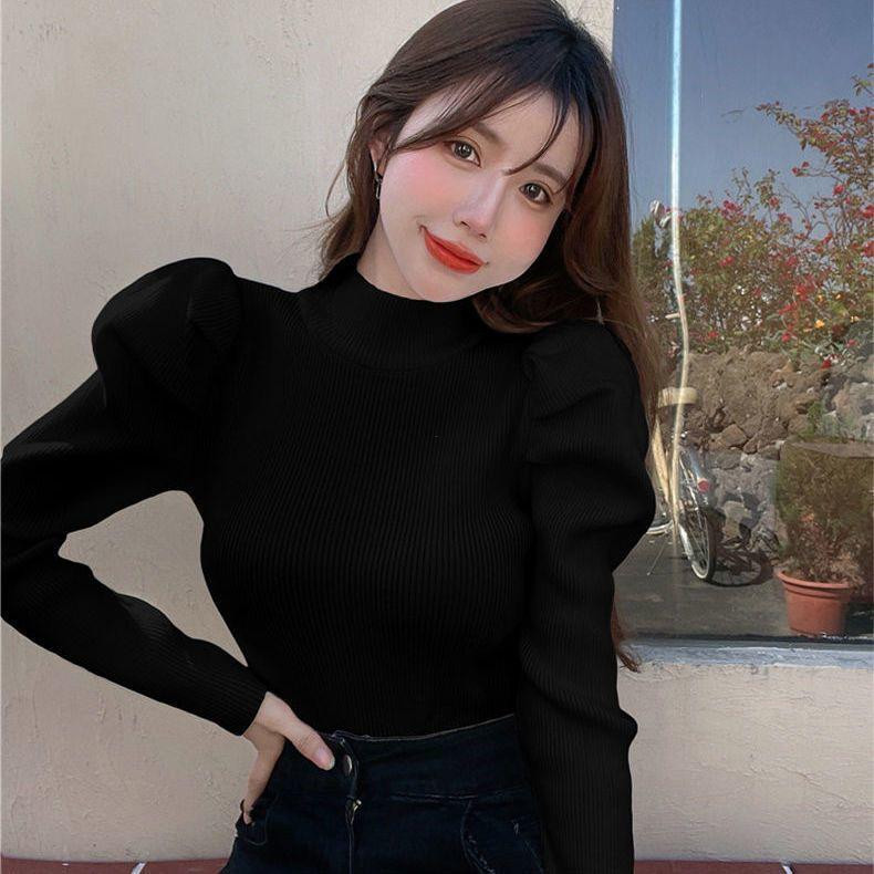 بلوزة نسائية جديدة بأكمام منتفخة سادة