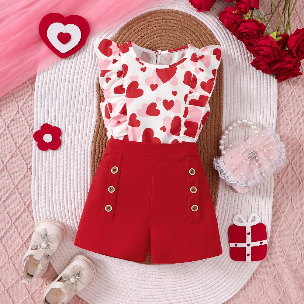 بلوزات وشورتات مطبوعة بحب جديد مكونة من قطعتين