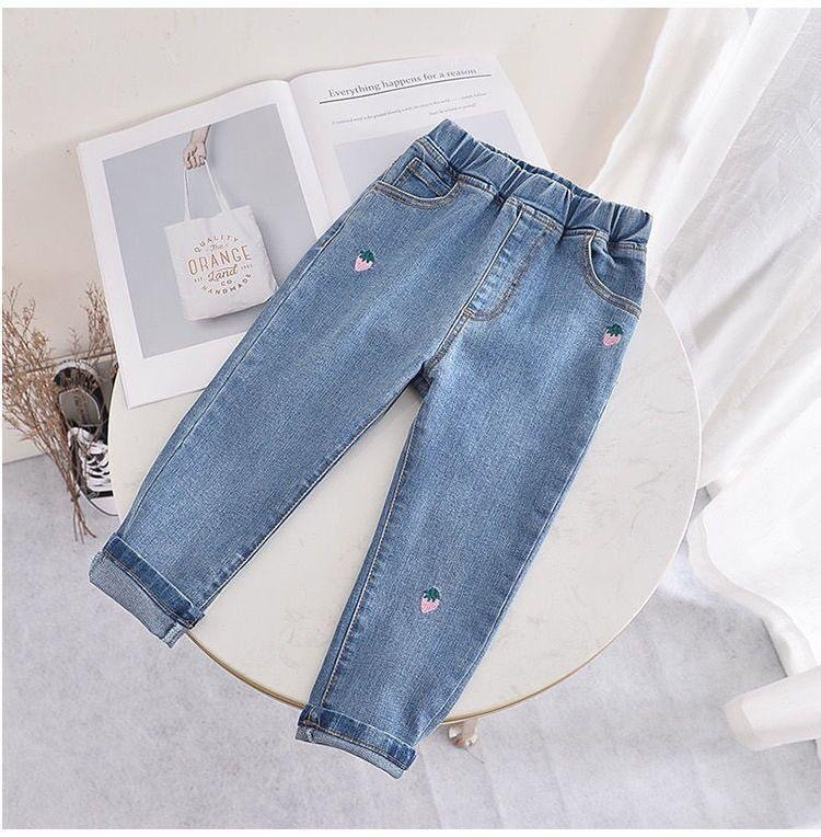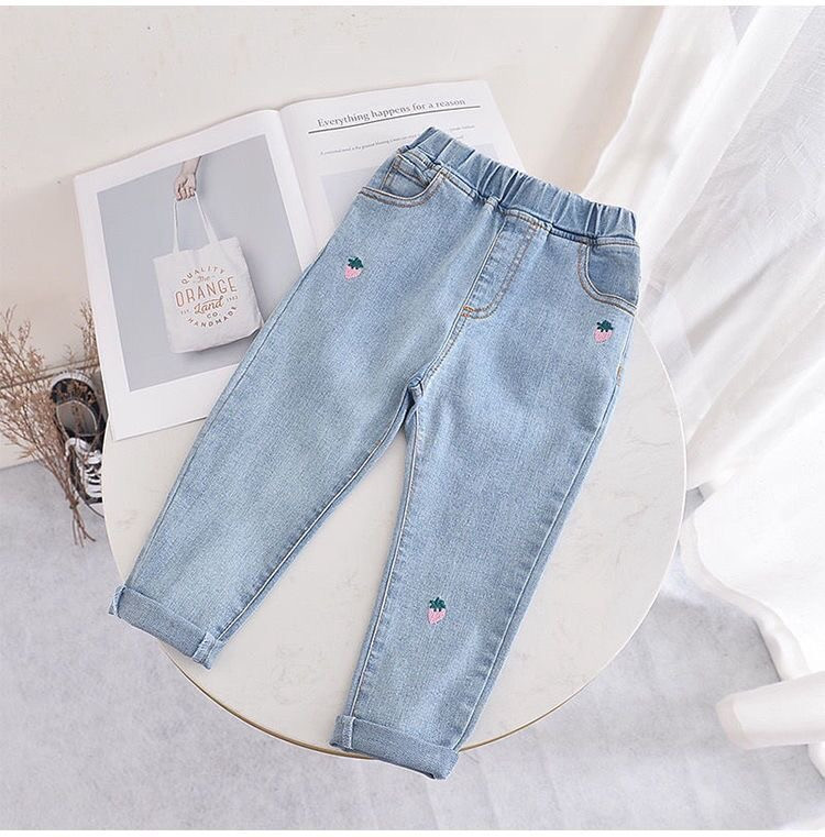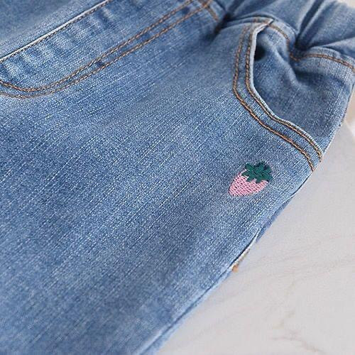 "بنطال جينز أطفال مع تطريز فواكه"