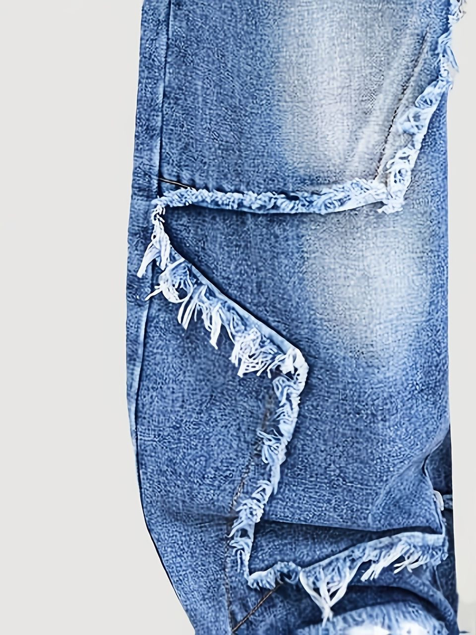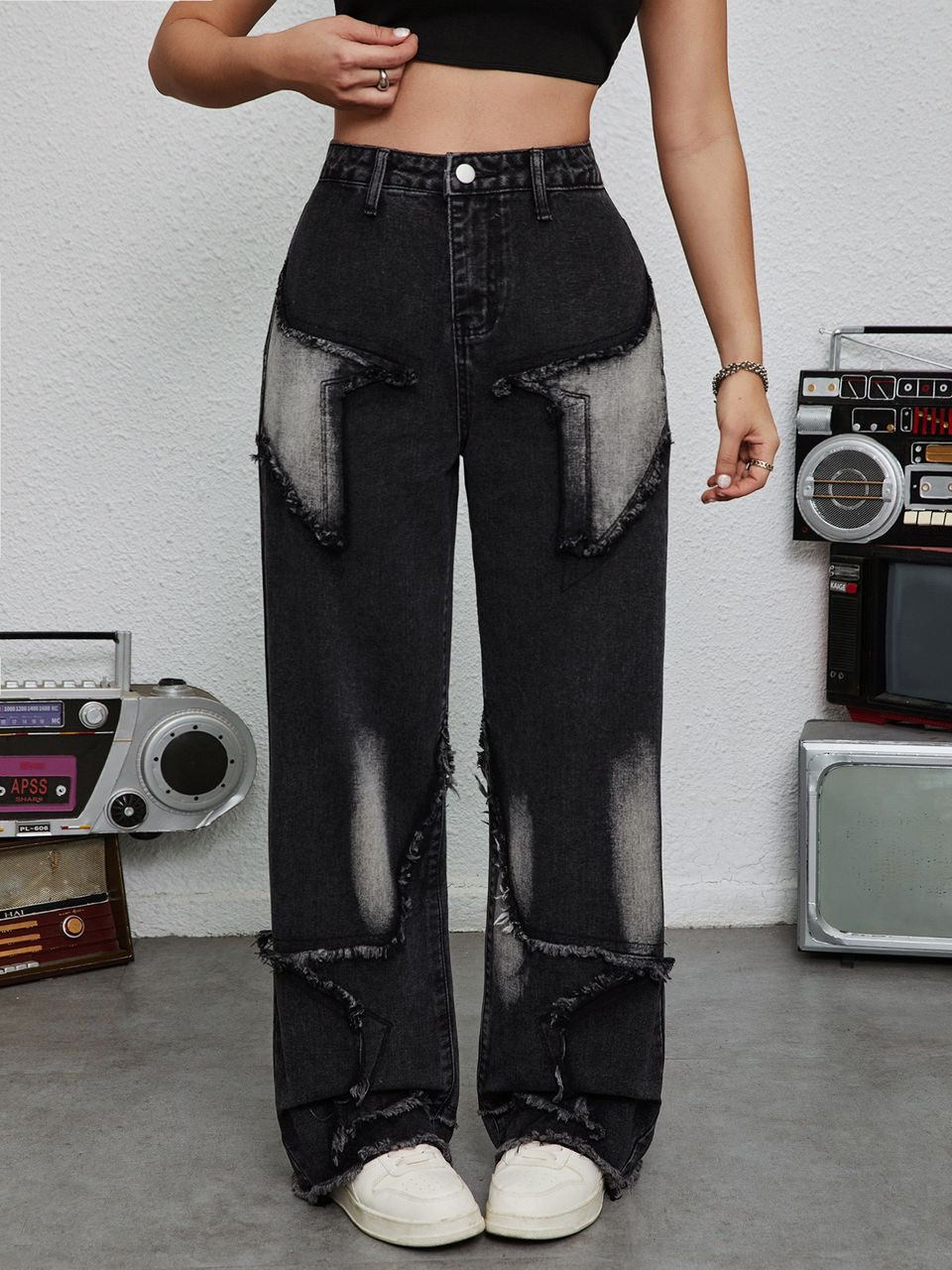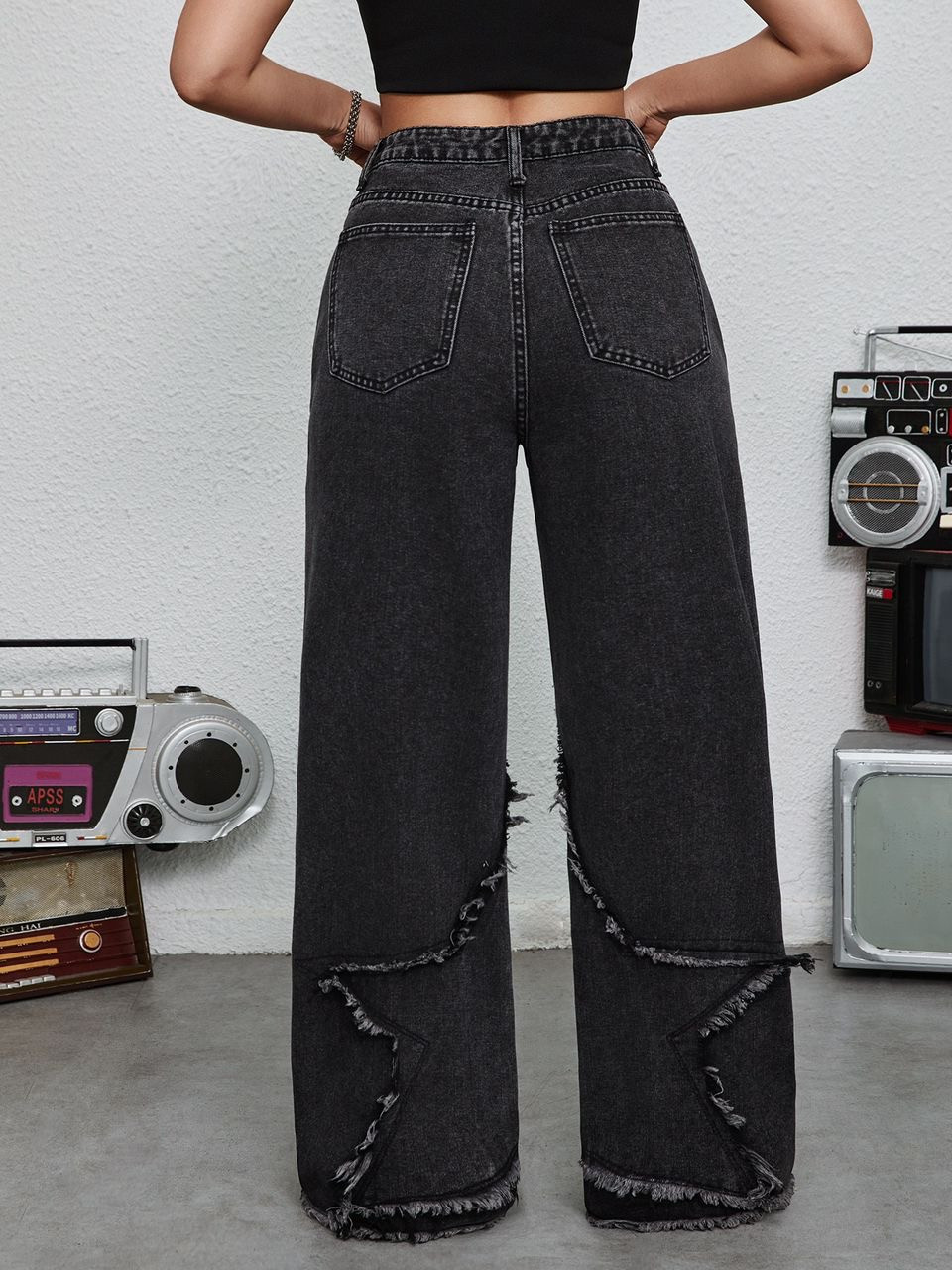 بنطال جينز بناتي واسع (أسود / أزرق)