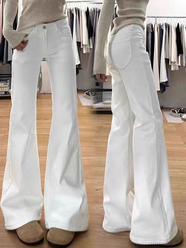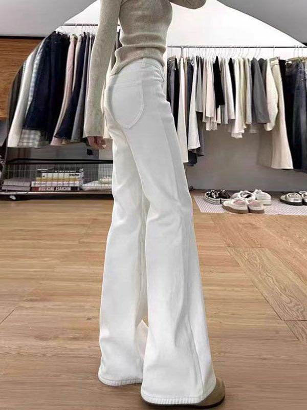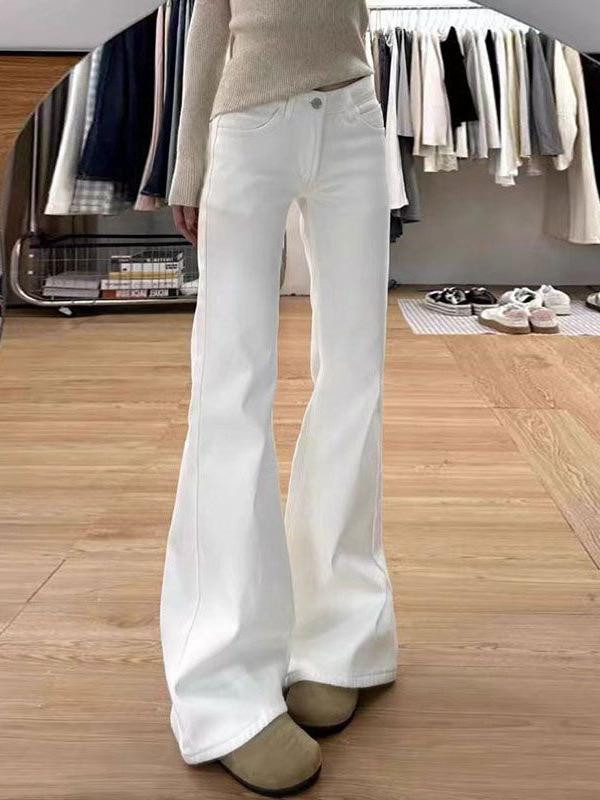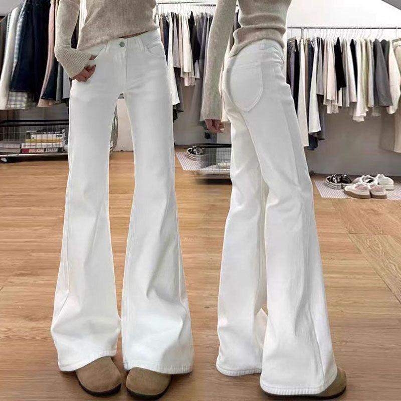 بنطال جينز نسائي أبيض 2025 – واسع عالي الخصر، مرن،