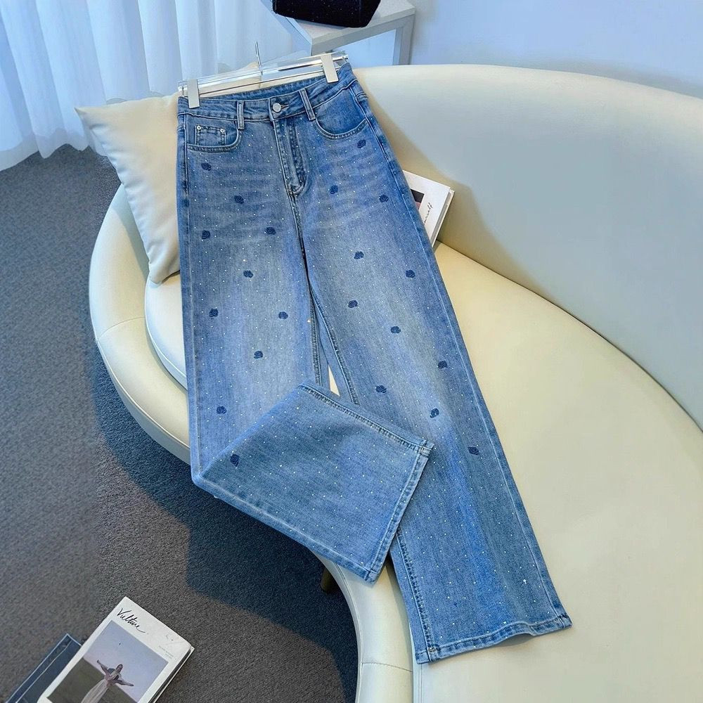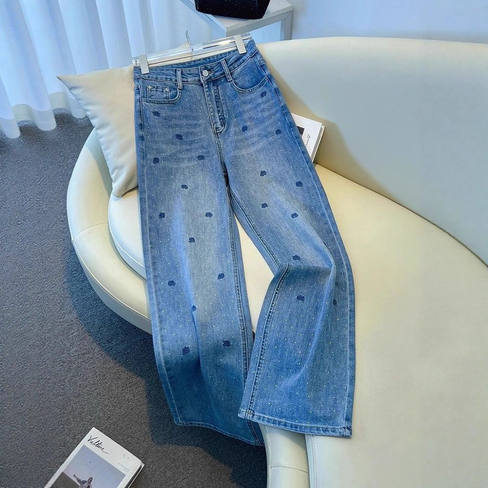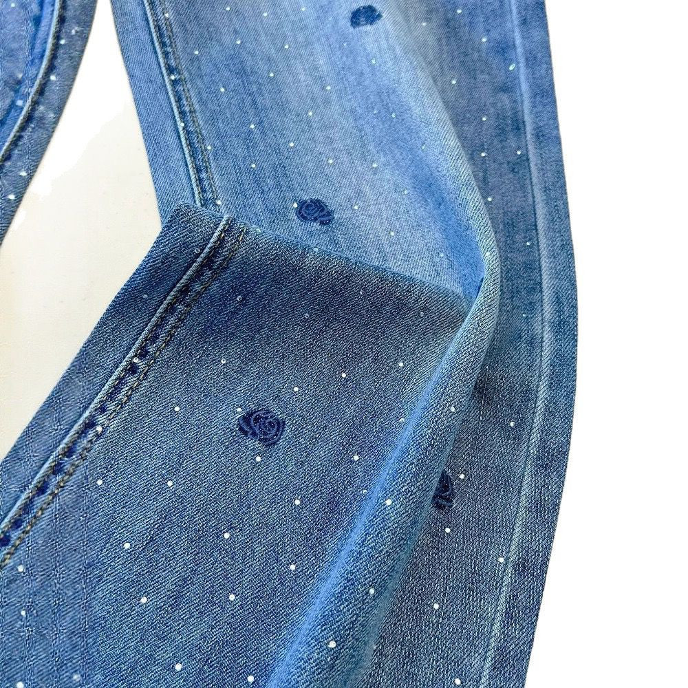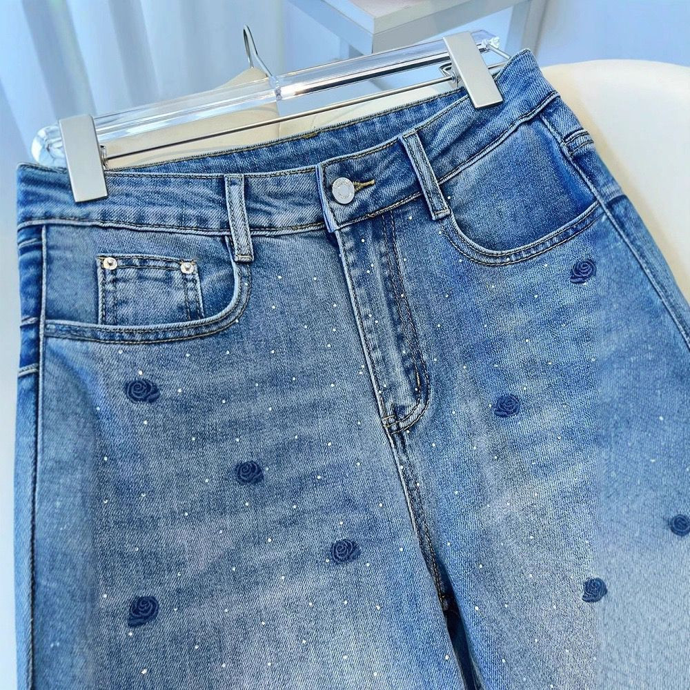 بنطال جينز نسائي أزرق بتطريز وردة