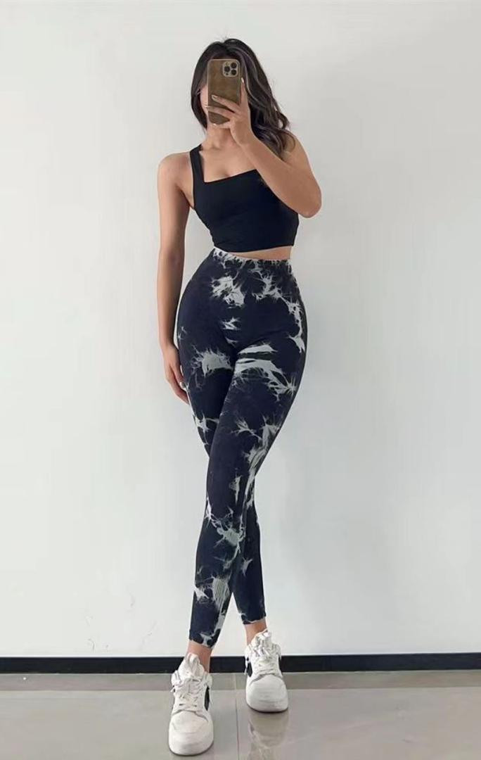 بنطال يوغا نسائي بنقشة تاي-داي، خصر مرتفع، رفع الأرداف، بدون خياطة