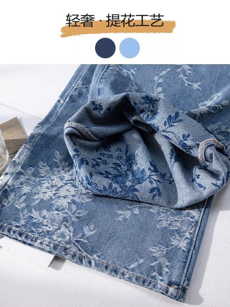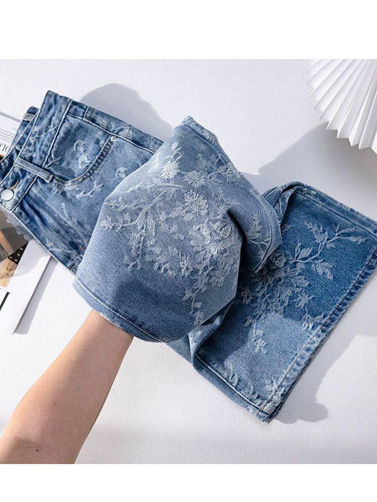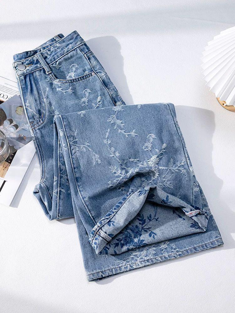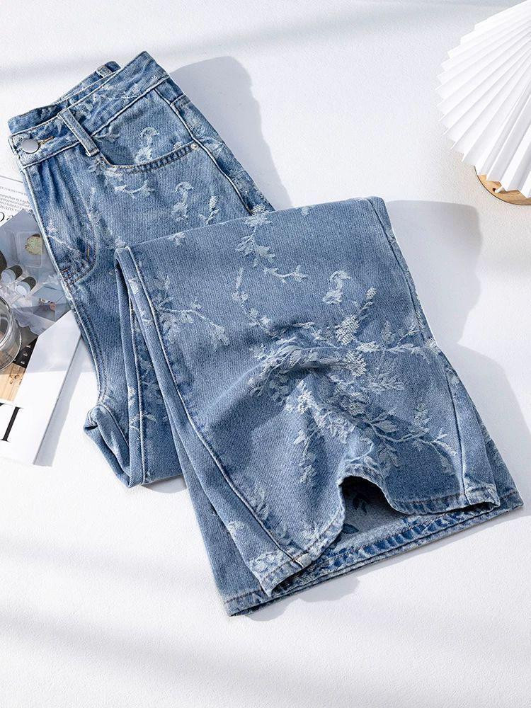 بنطلون جينز نسائي واسع الساق بنقشة عصرية