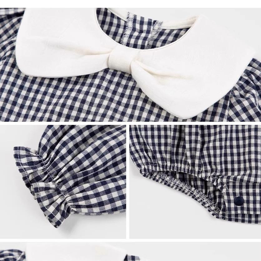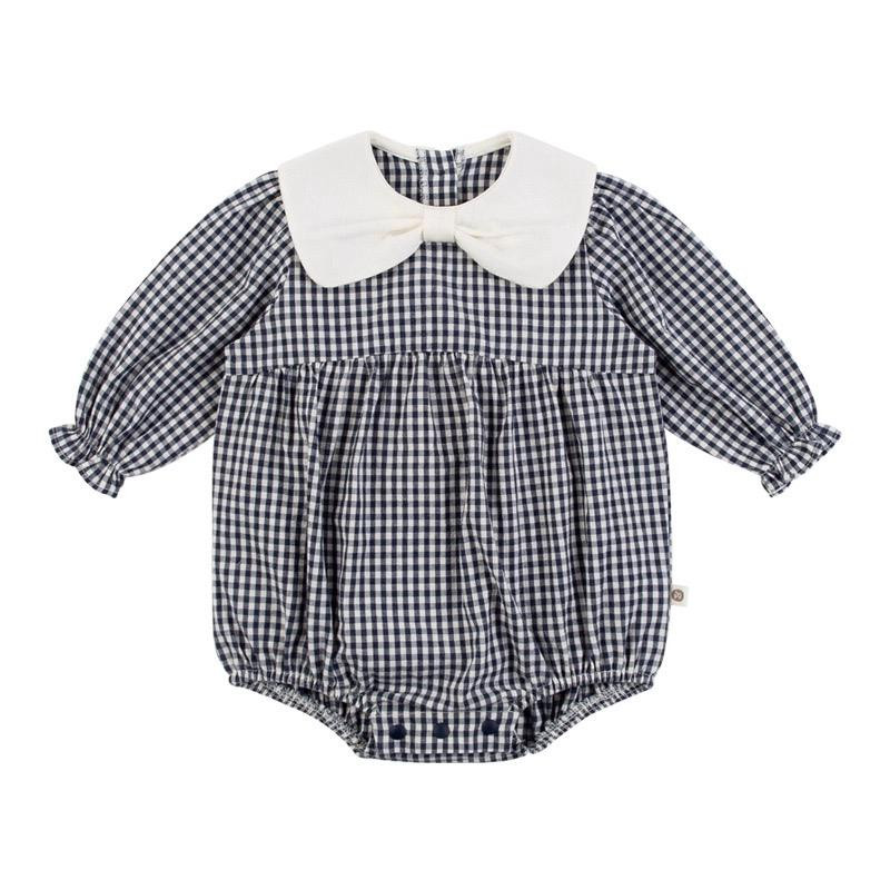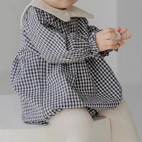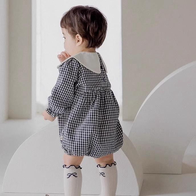 بيبي طويل كم بياقة بيضاء – خريف/شتاء، تصميم كاجوال للأطفال، نقش مربعات