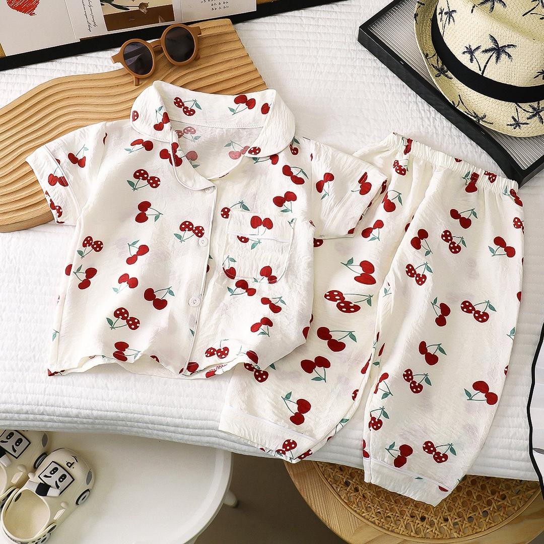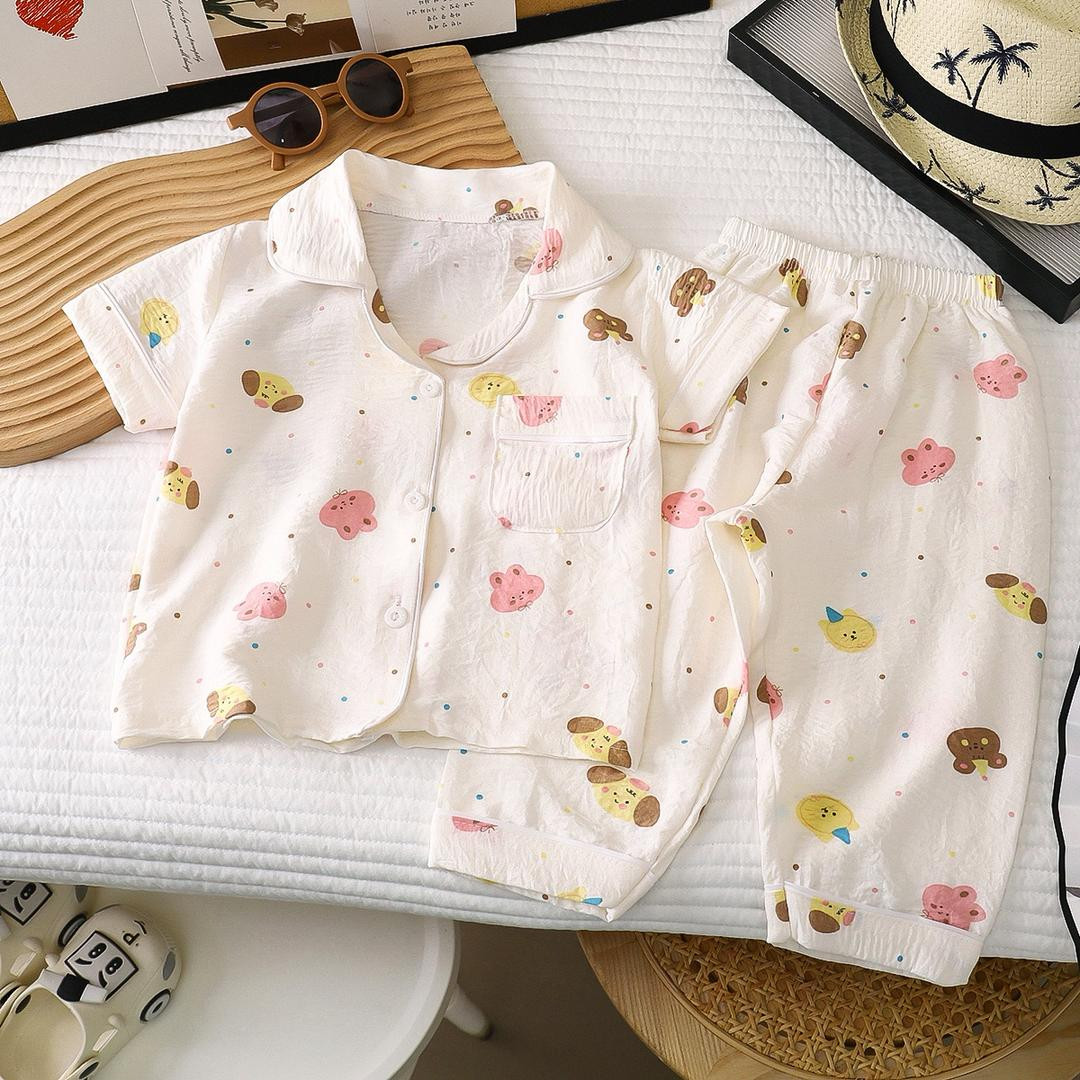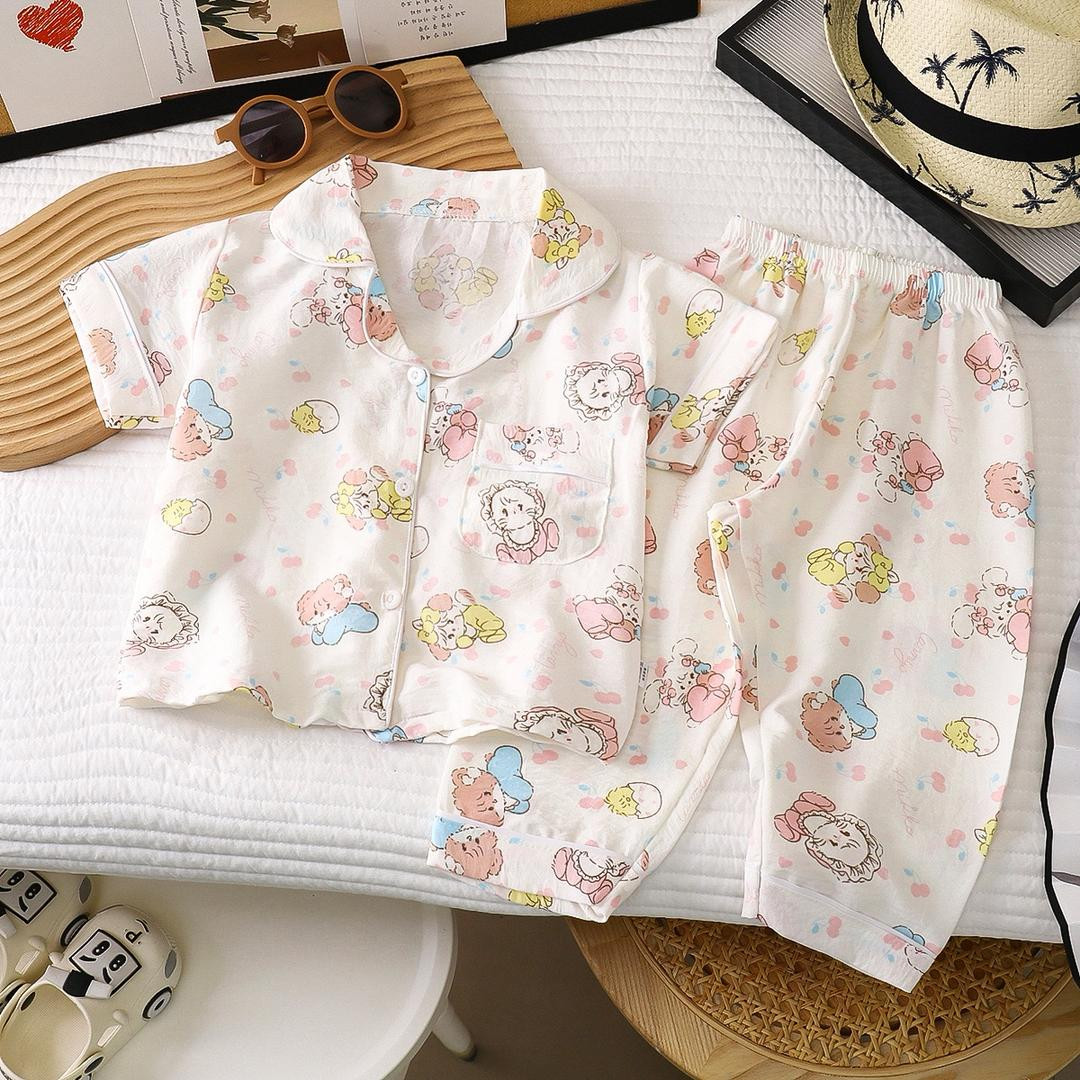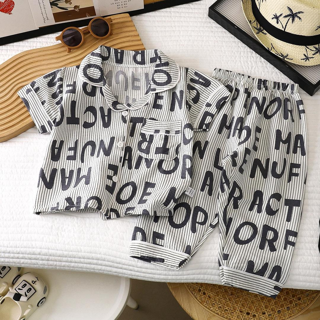 بيجامة أطفال اولادو بنات – طقم خفيف، نصف كم مع بنطال طويل، مناسب للأولاد والبنات كملابس منزلية)