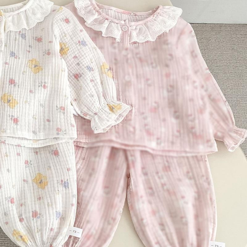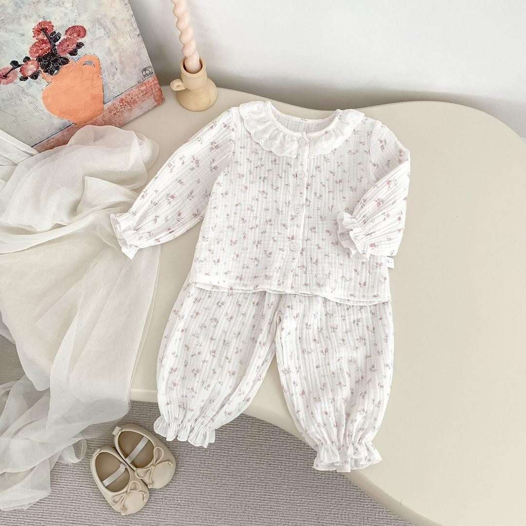 بيجامة أطفال بنات – موديل خريف 2025، قطن نقي بطبقتين، طقم منزلي قطعتين (كارديجان + بنطلون)