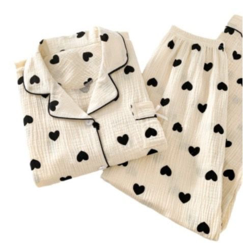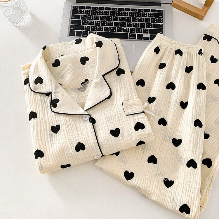 بيجامة نسائية قطنية بنقشة قلوب – تصميم مريح وناعم