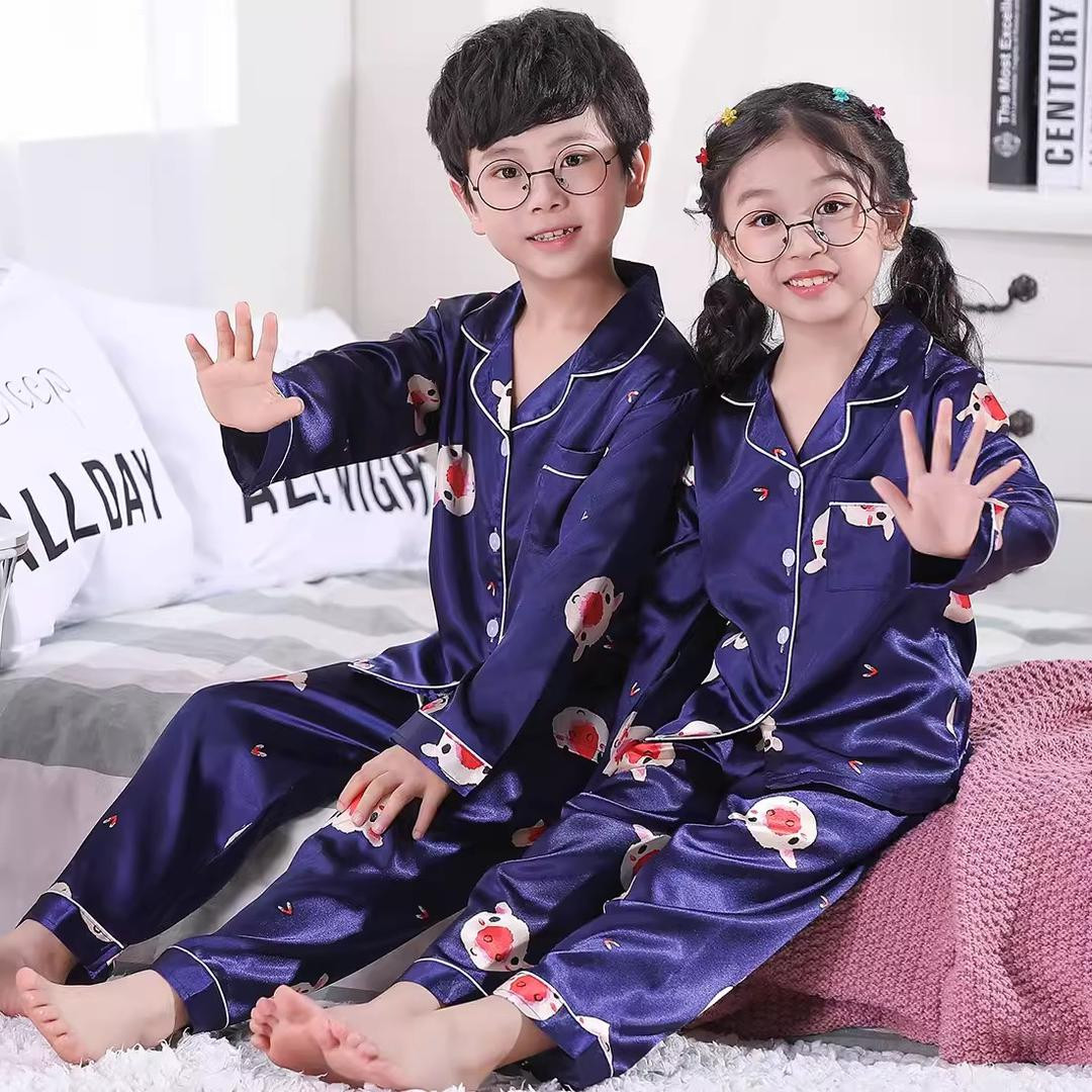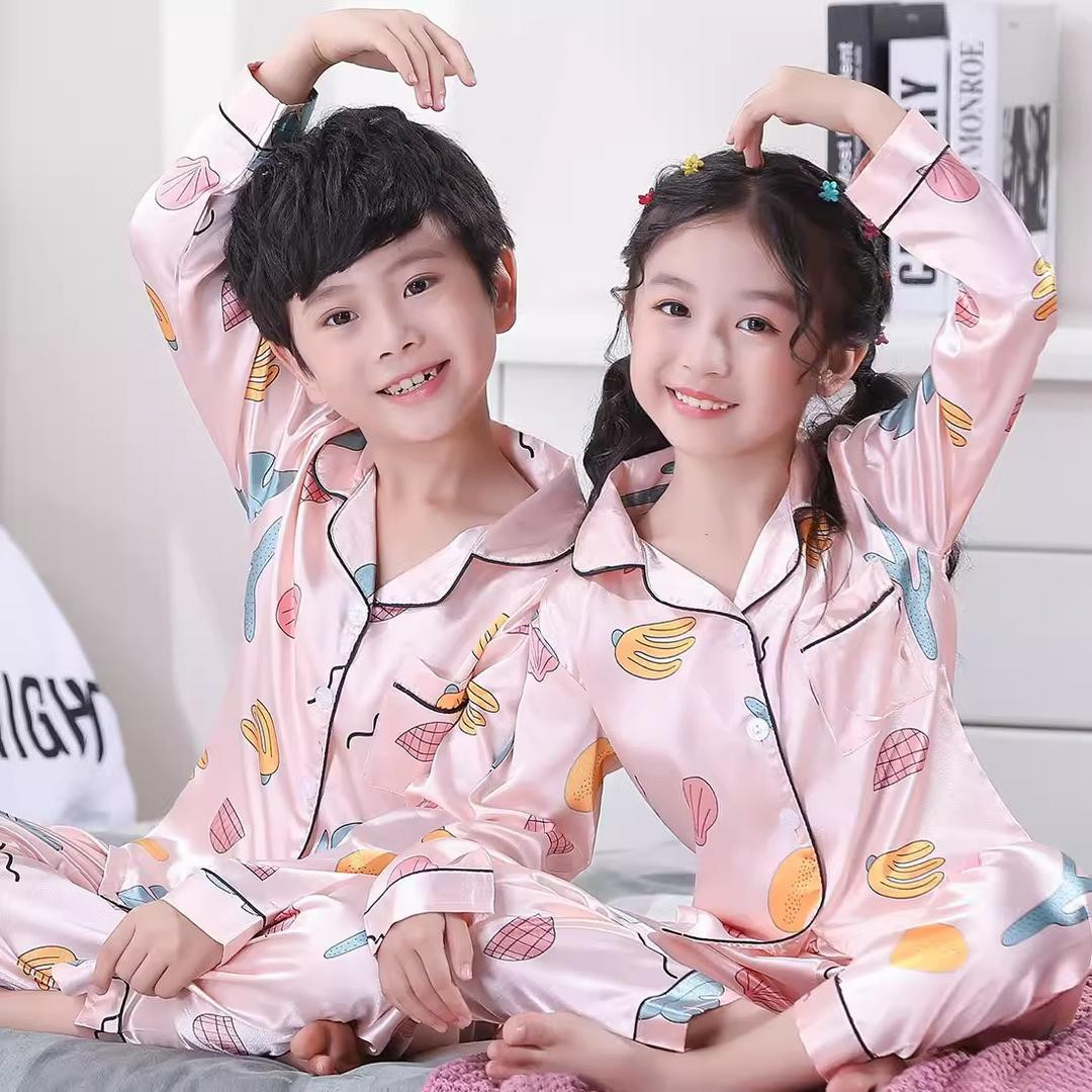 بيجاما أطفال (قماش حرير جليد خفيف) قصيرة الأكمام، للبنين والبنات