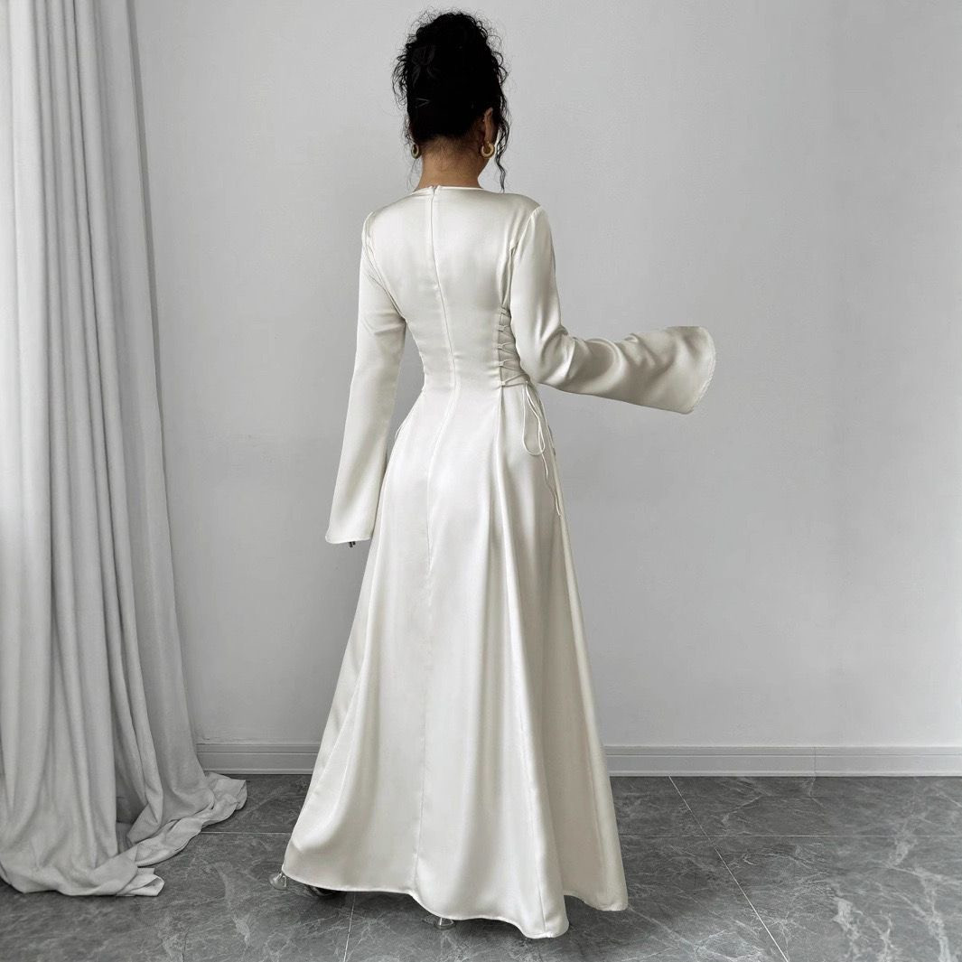 فستان أبيض أنيق بأكمام واسعة