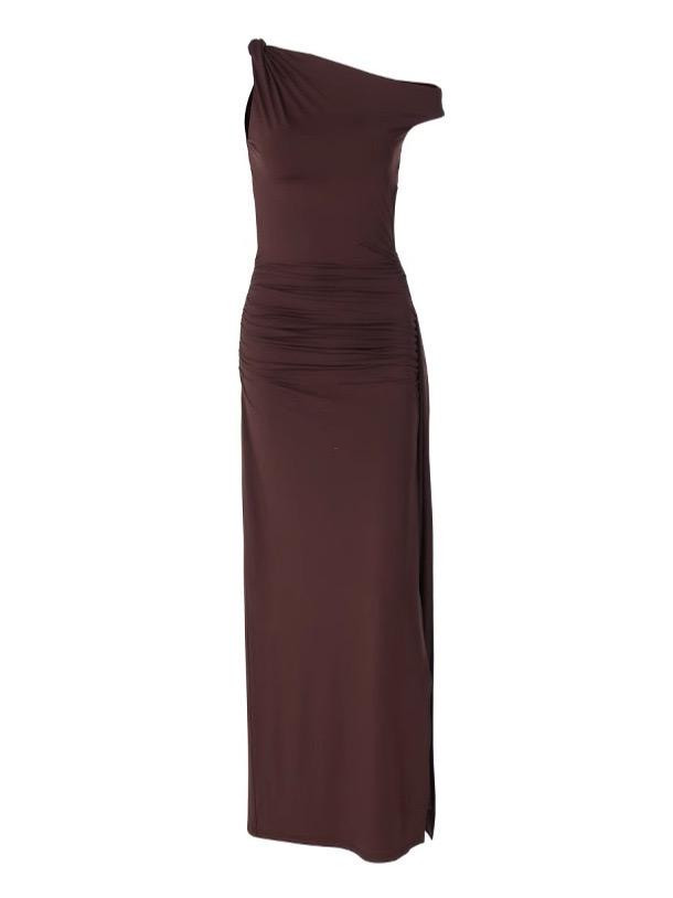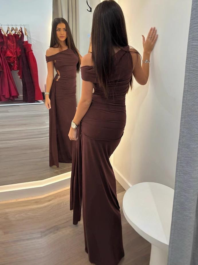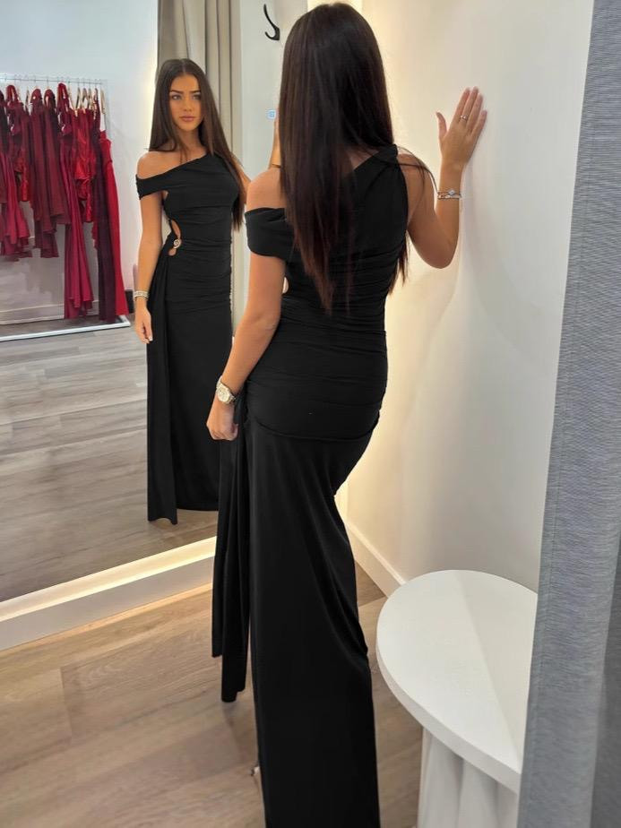 "فستان أنيق بكتف واحد وتصميم عصري"