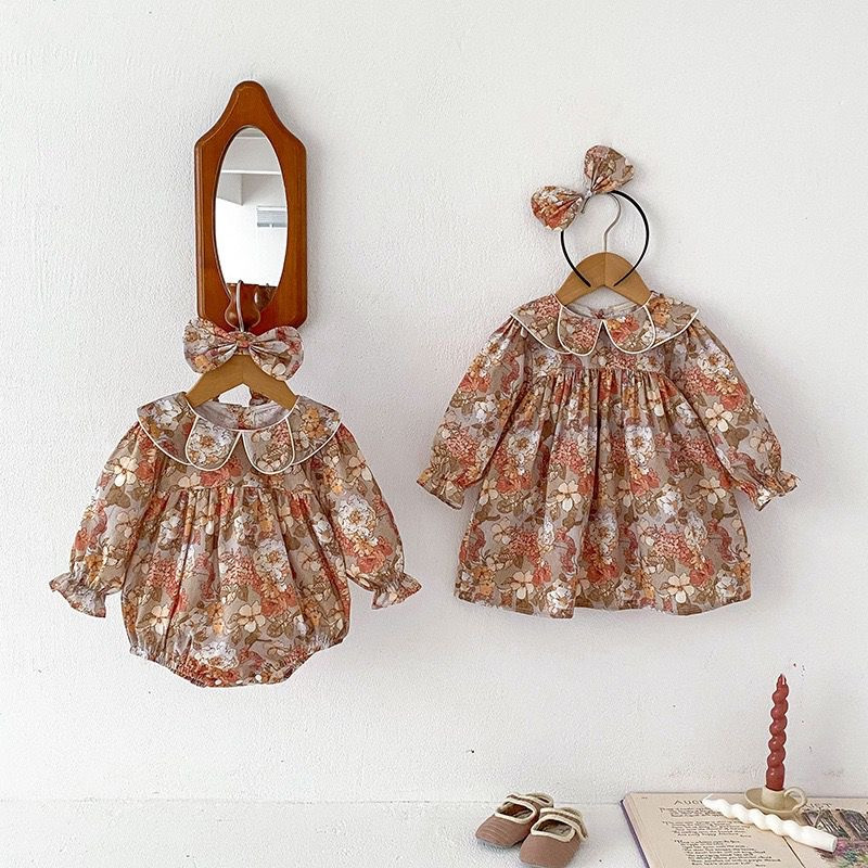 فستان أطفال بناتي خريفي مطبوع بأزهار