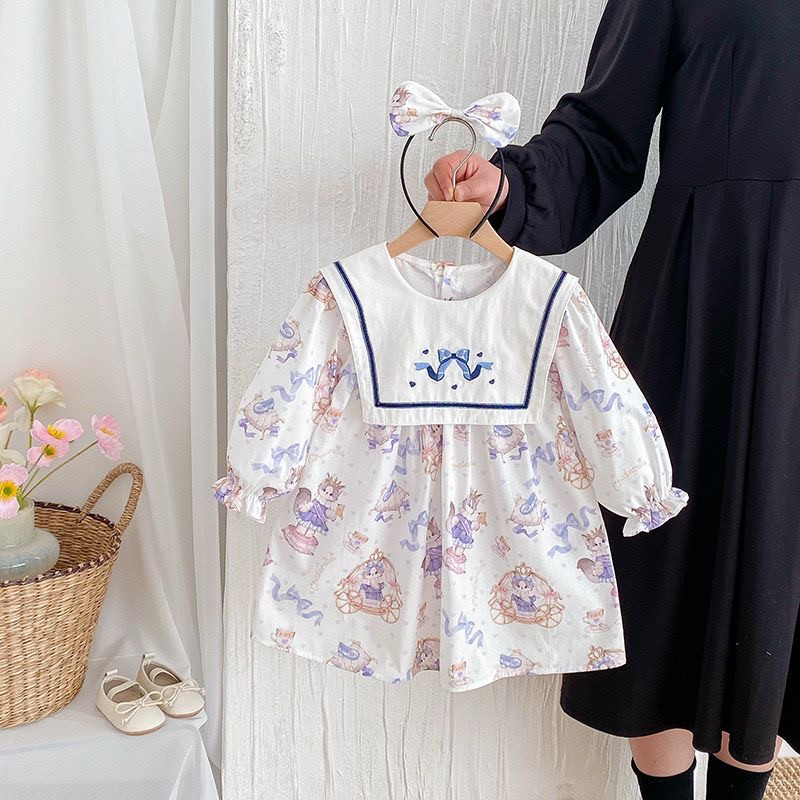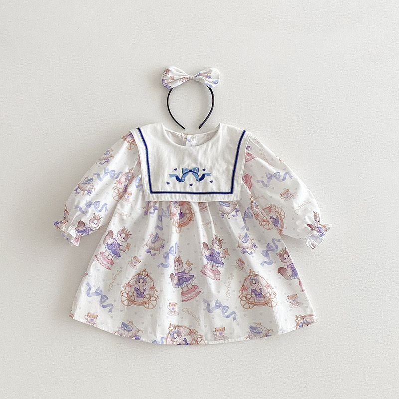 "فستان أطفال برباط رأس مع ياقة مزخرفة"