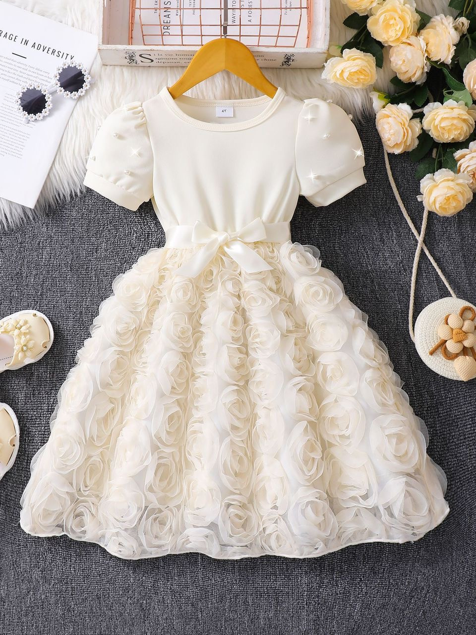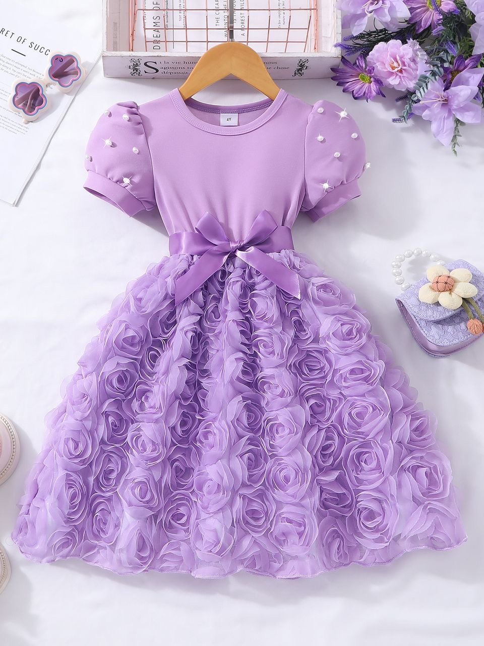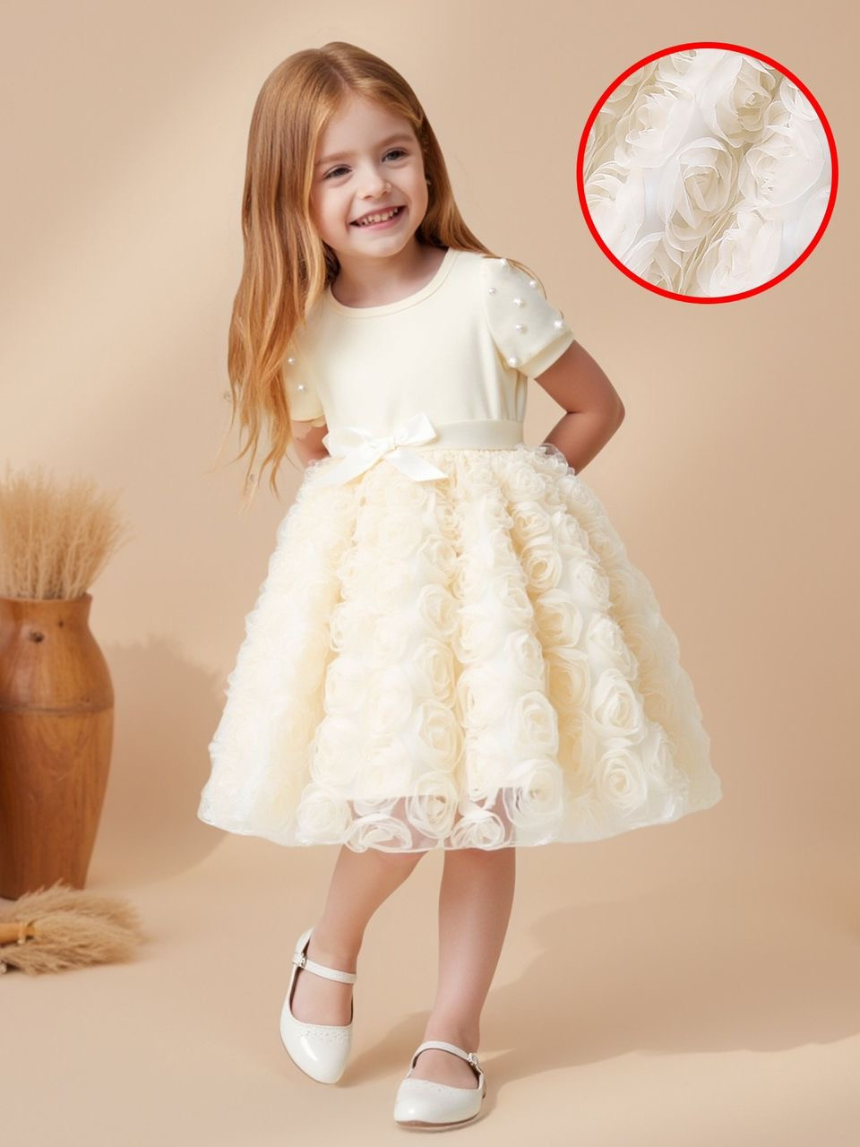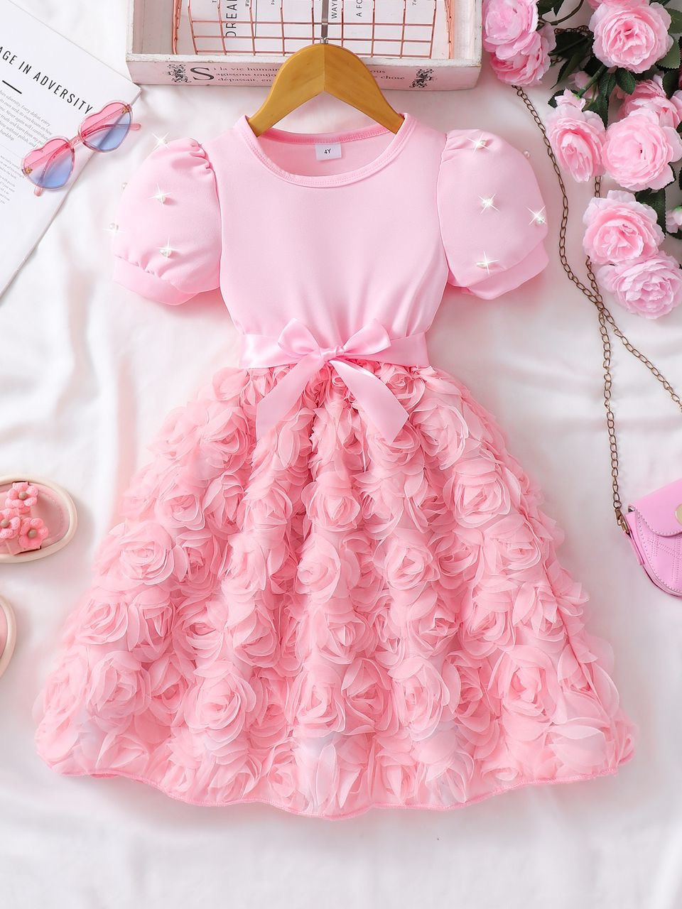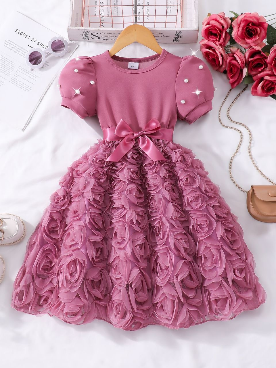 فستان أطفال وردي بتصميم ورود ثلاثية الأبعاد – أناقة للمناسبات
