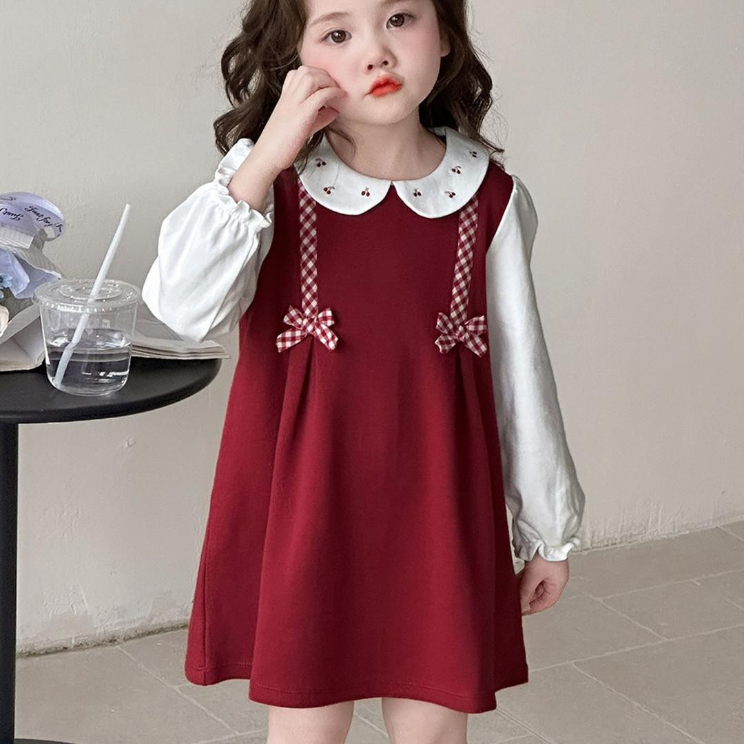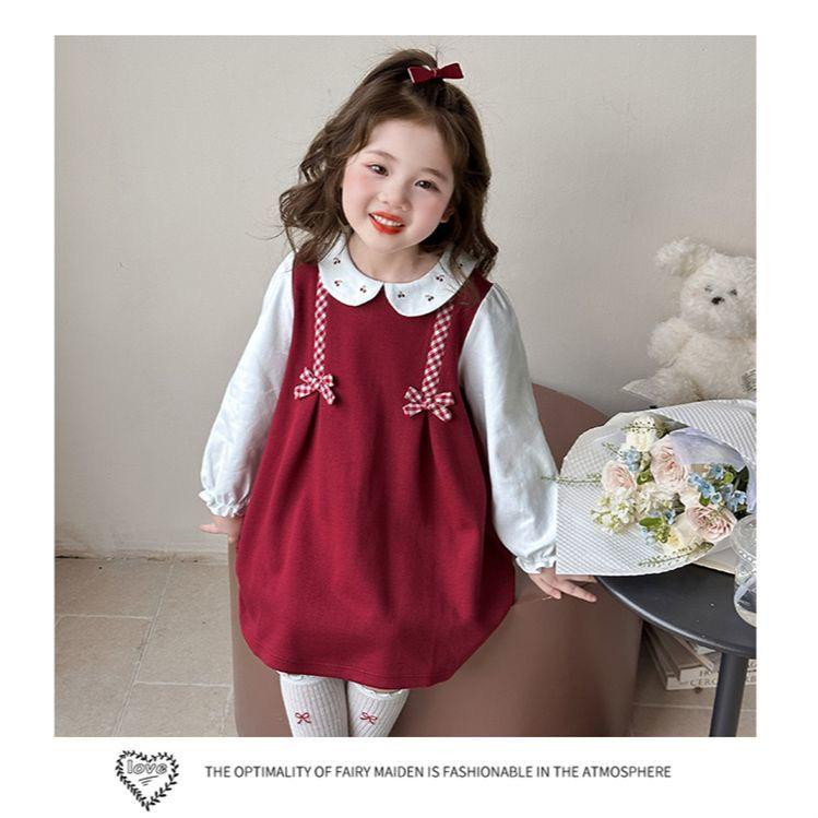 فستان بناتي أحمر أنيق بأكمام طويلة بتصميم أميرة، إصدار ، مناسب لفصل الخريف ويمنح الطفلة إطلالة فاخرة وجذابة