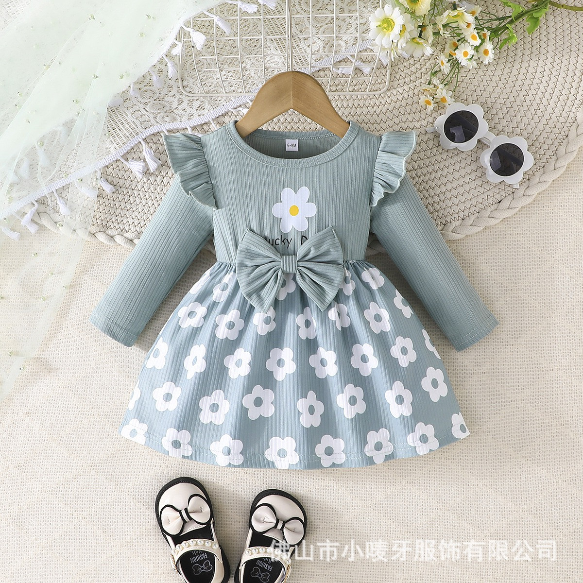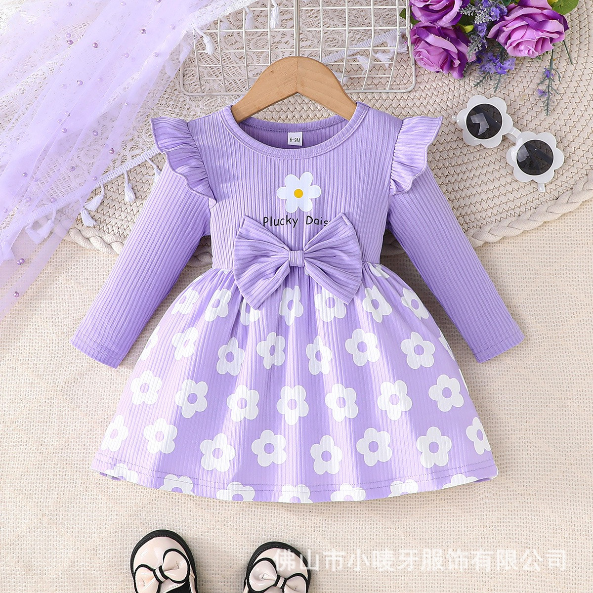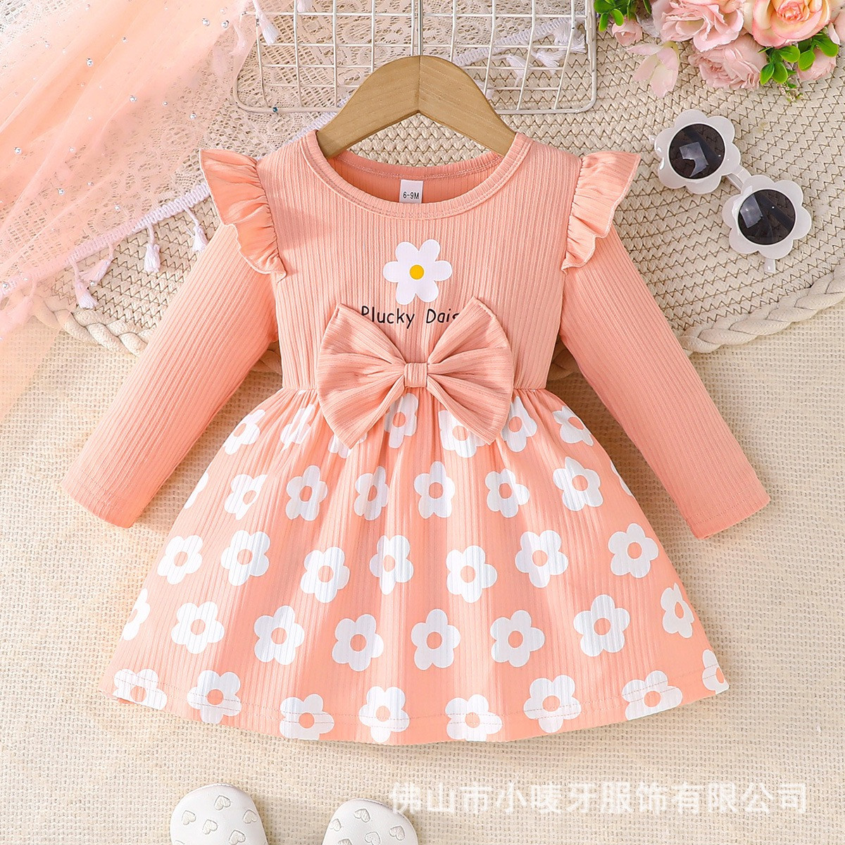فستان بناتي أنيق بطبعة زهور بأكمام طويلة