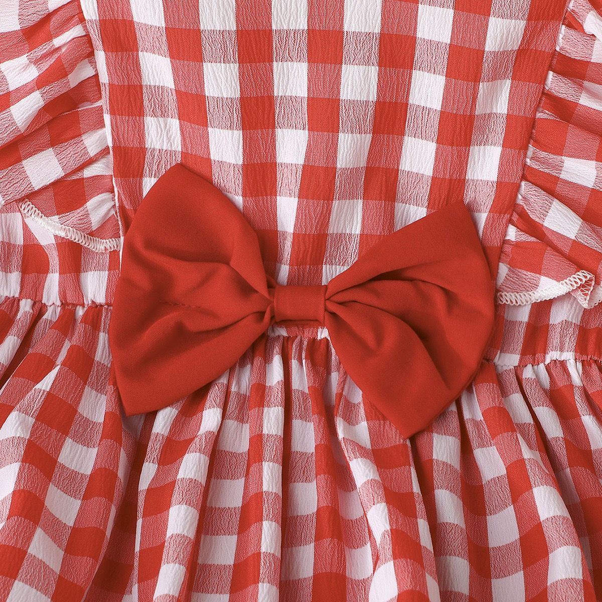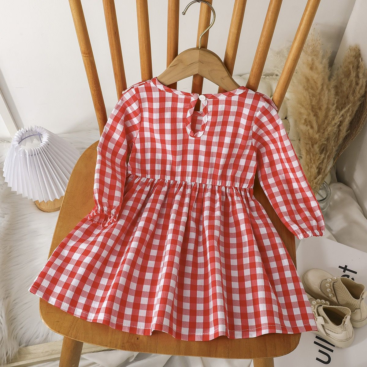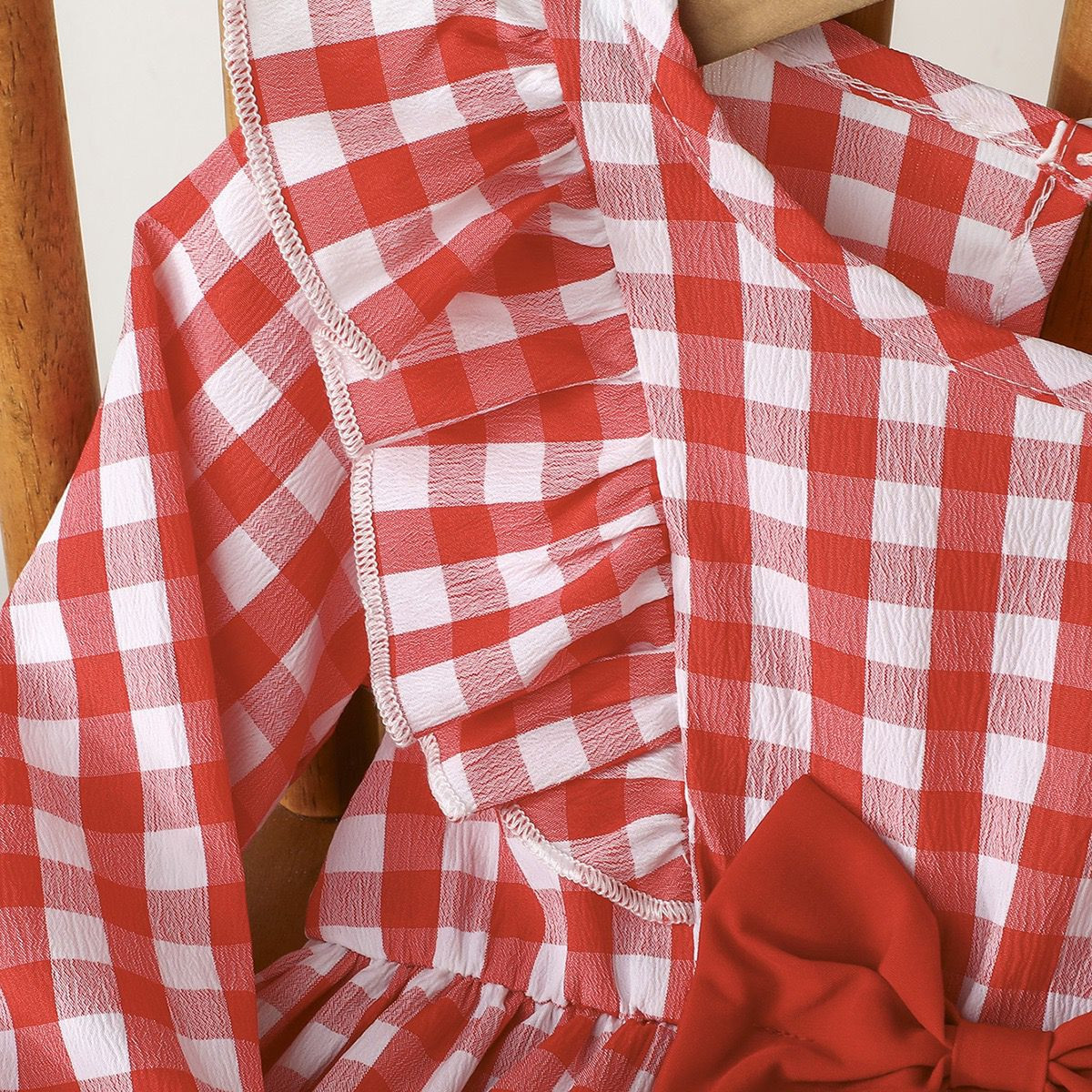 فستان بناتي أنيق للأطفال ، بتصميم كارو أنثوي جميل مناسب لخريف وشتاء ، مزين بفيونكة وكشكش لطيف