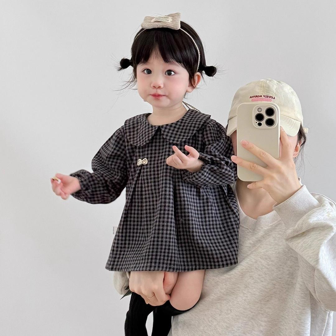 فستان بناتي أسود كاروهات نسخة مطورة ترتر ولمعة