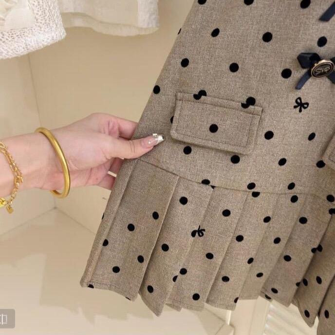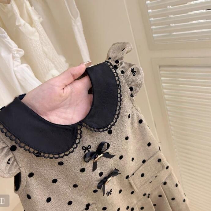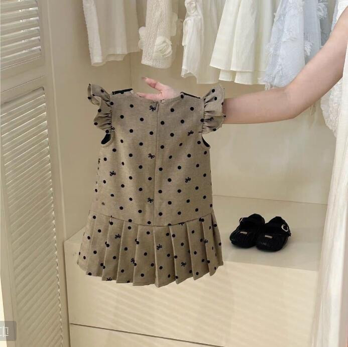 فستان بناتي منقط بأكمام قصيرة