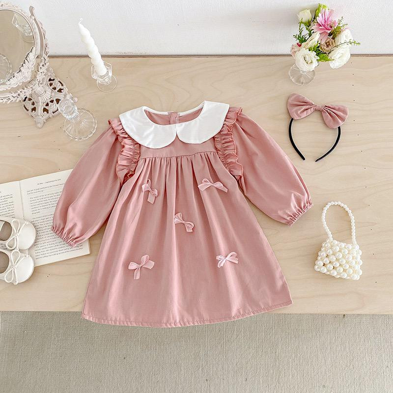 *فستان بناتي ناعم مع ربطة رأس لمسة أميرية