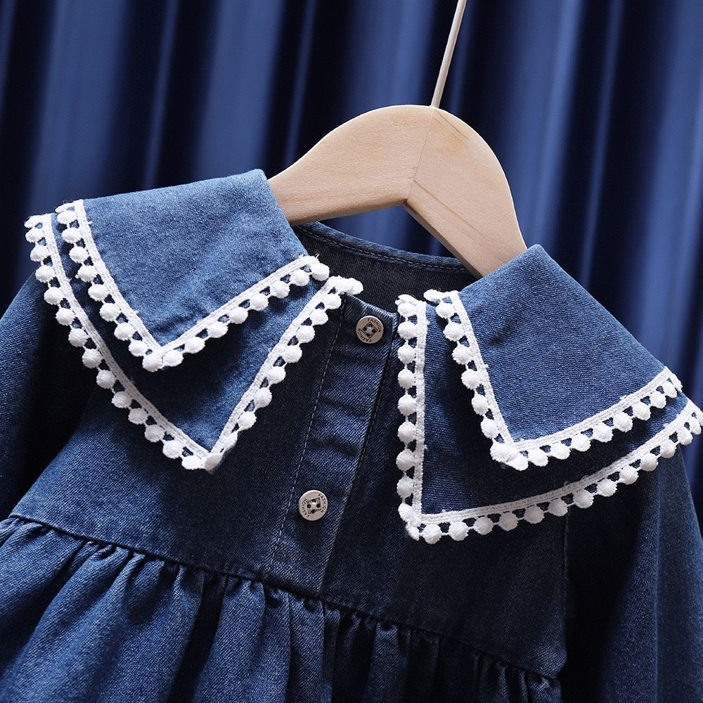 فستان دنيم أطفال بياقة مزخرفة