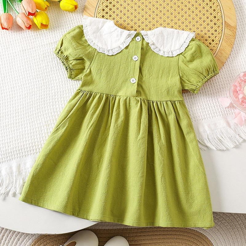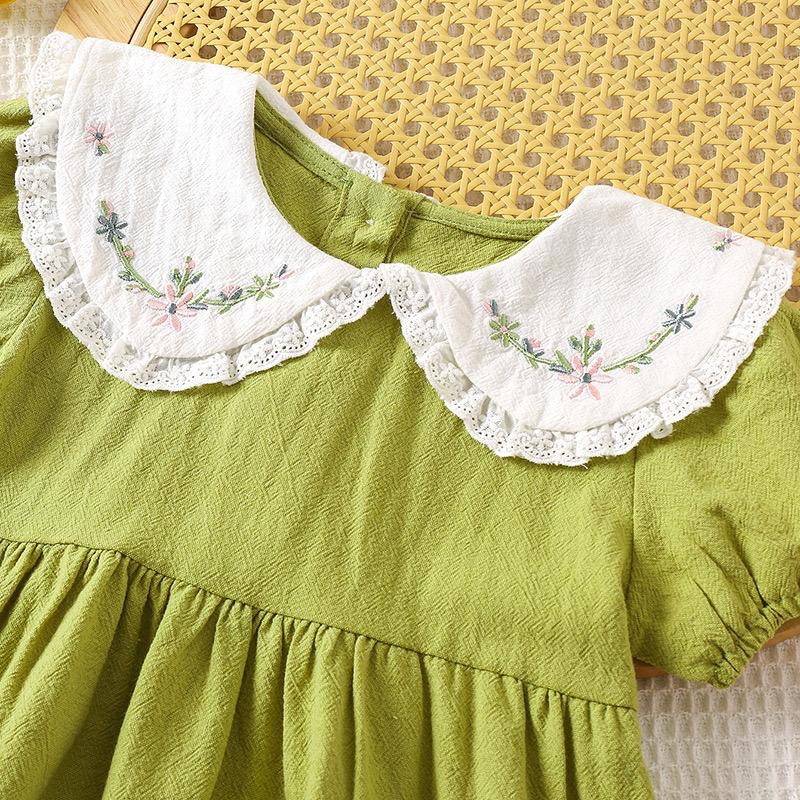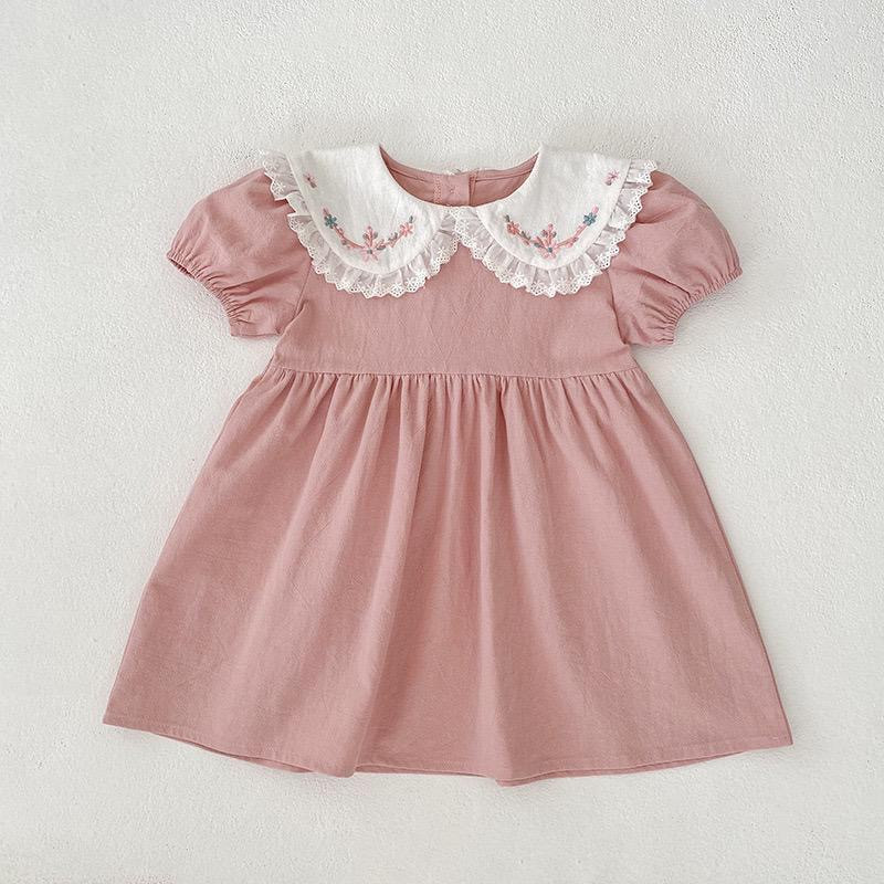 *" فستان للأطفال بياقة مطرزة وأكمام منفوشة*