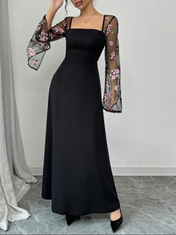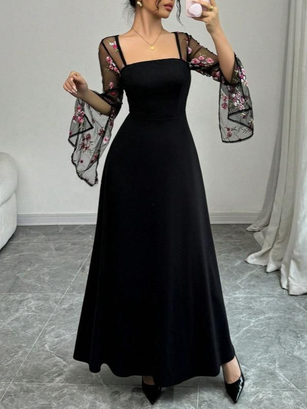 فستان نسائي أنيق بتصميم مطرز بخياطة متقنة وتفاصيل راقية بقصة ضيقة تبرز القوام بأسلوب بسيط وفخم