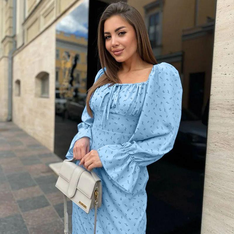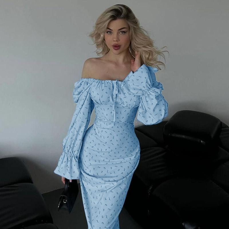 فستان نسائي أوروبي، أوف شولدر، مطبوع بالزهور، شق جانبي، تصميم ستايل كلاسيك/فستان طويل