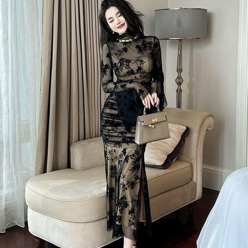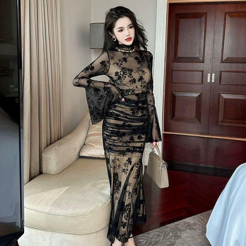 فستان نسائي بقصّة ذيل سمكة وقماش شبكي