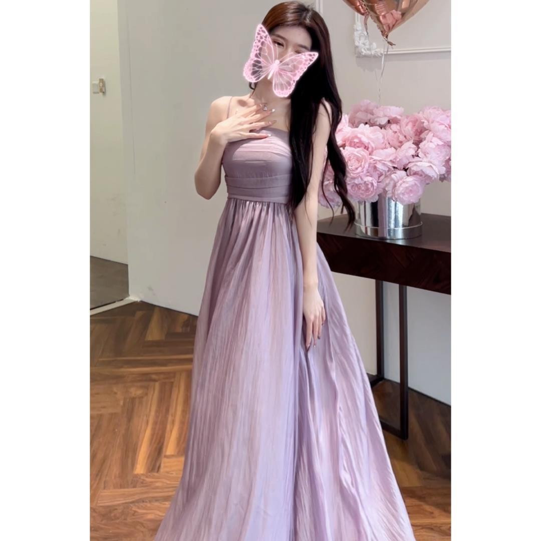 فستان نسائي بنفسجي بحمالات، ستايل عصري أنيق، تصميم ضيق لإبراز القوام مع لمسة شبابية رائجة، يخفي العيوب ويعطي مظهر رشيق.
